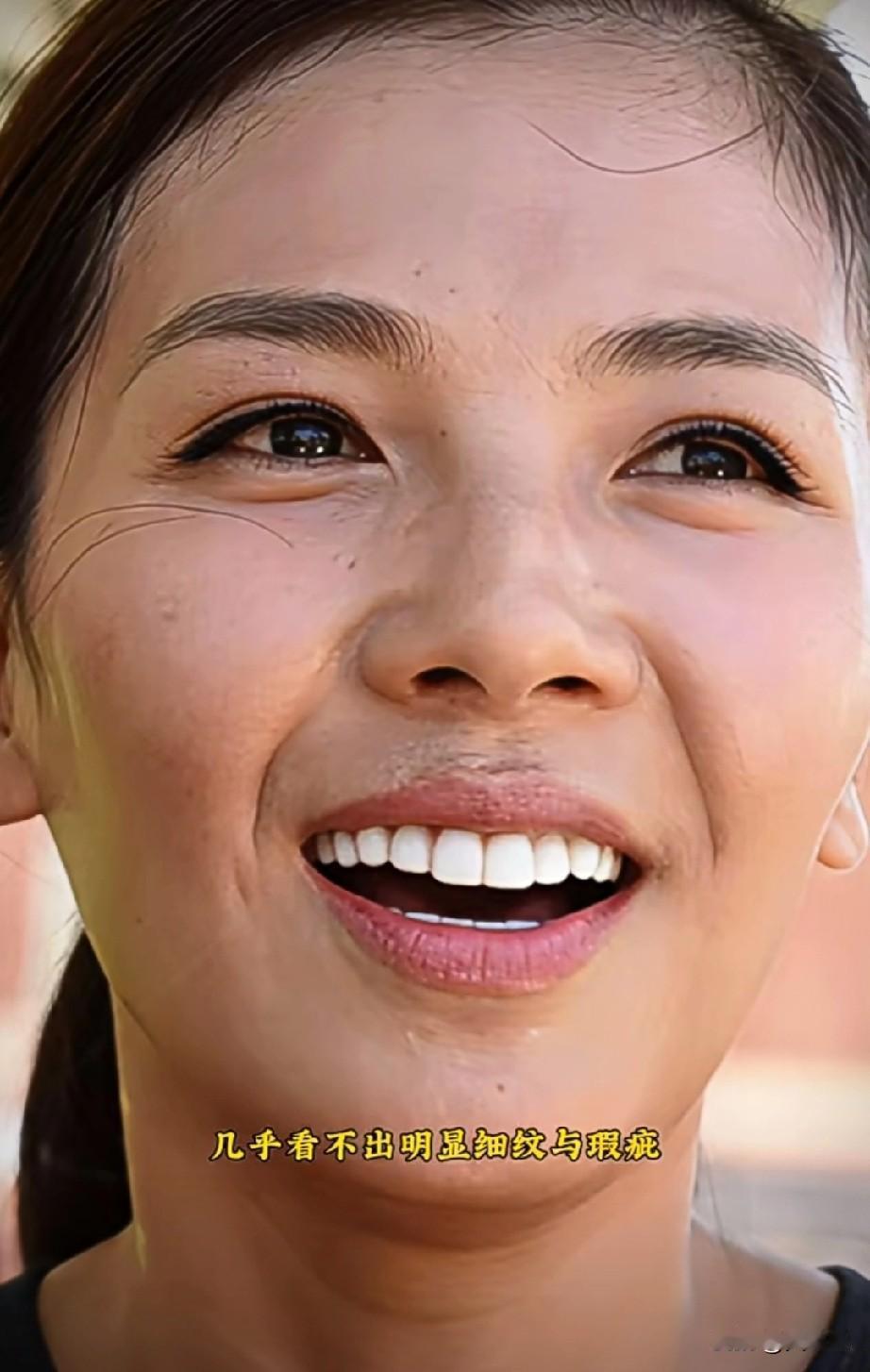 48岁的她, 在无美颜无滤镜的镜头下依旧能打。皮肤紧致通透,几乎看不出明显细纹与瑕疵,尽显超越年龄的活力与健康。 五官舒展大气,眉眼明亮有神,笑容灿烂有感染力,褪去精致妆容,更显真实又充满力量的美好。