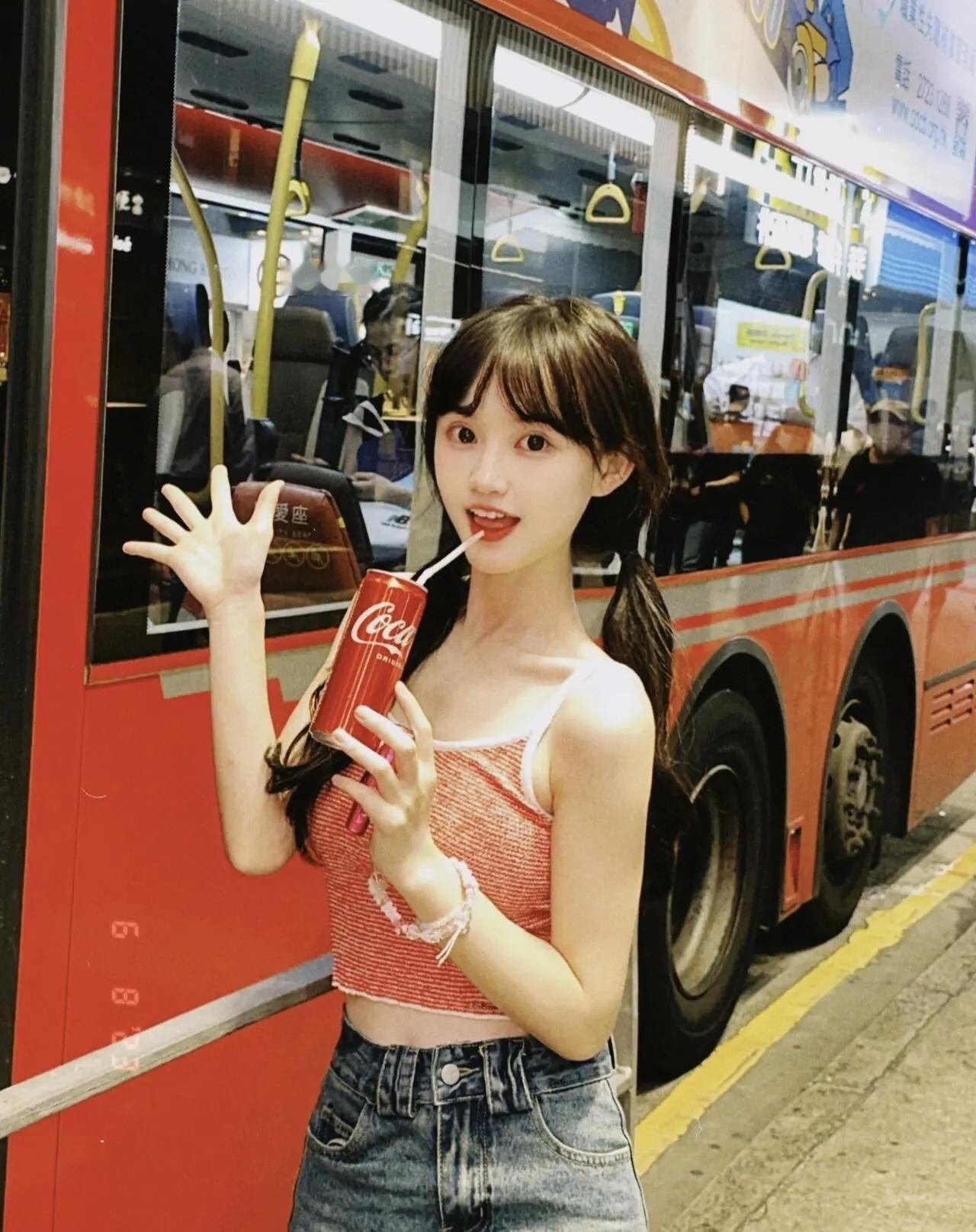 元气少女与红巴士的甜蜜邂逅🚌💖