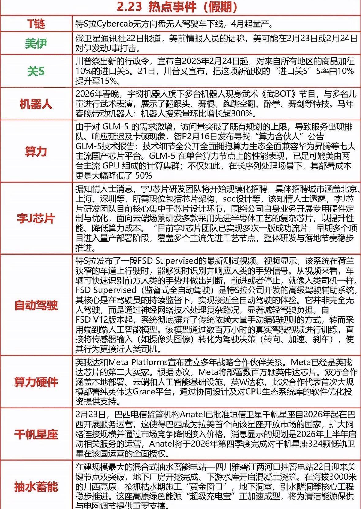 2026年春节期间新闻热点报道 科技圈太炸裂了!特斯拉无人车量产在即,第三代人形机器人Optimus预计年底量产,年产能达100万台,V3版本手部自由度提升,成本还会降低。Robotaxi业务也有进展,Cybercab车型4月将量产。电池方面还实现了干电极工艺规模化生产。 与此同时,春晚机器人也来凑热闹。无锡魔法原子成春晚智能机器人战略合作伙伴,MagicBot Z1能完成高难度动作,MagicDog能适应极端环境。 在政策助力下,特斯拉自动驾驶有望加速,储能业务也表现强劲。虽然股价有波动,但机构还是很看好,科技的未来已来!