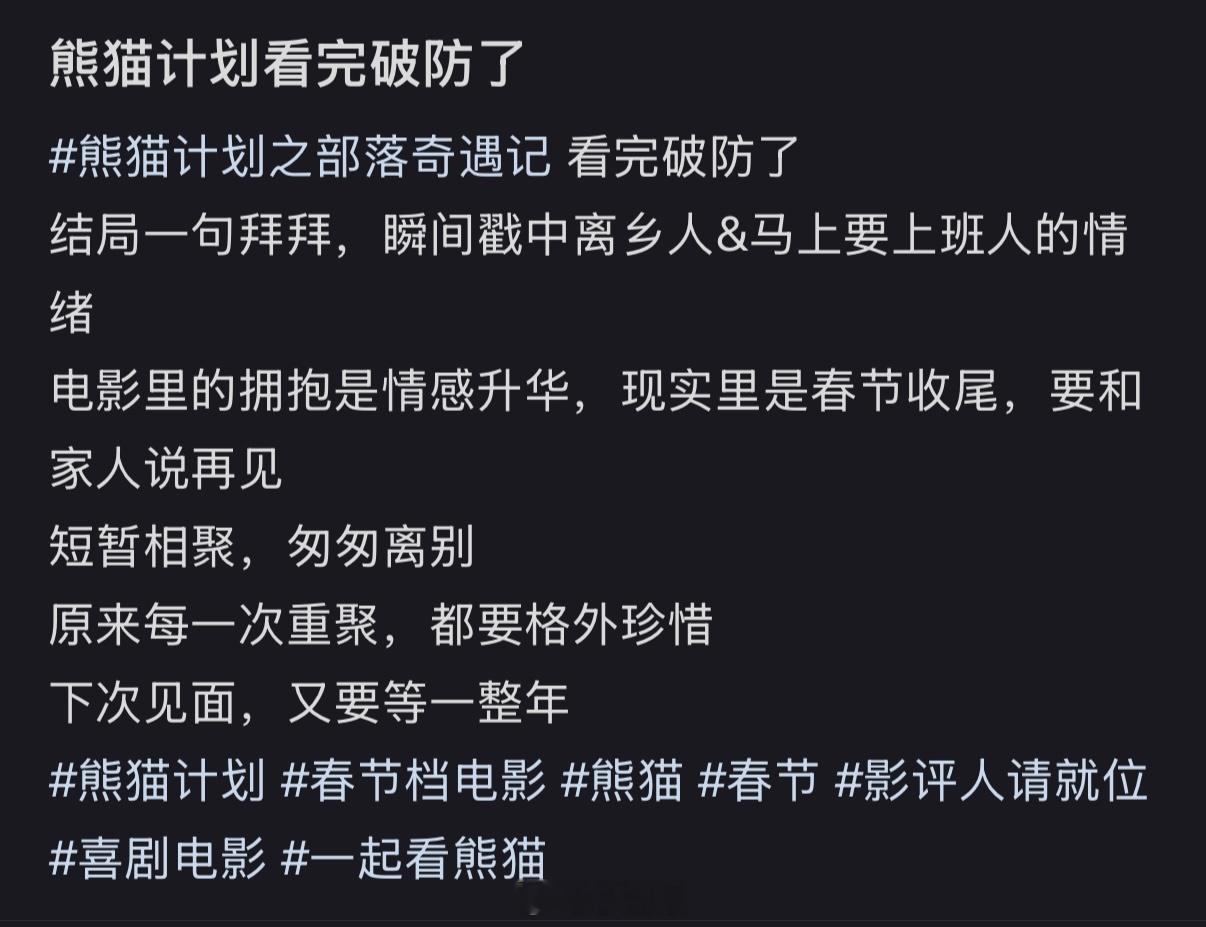 一句拜拜成了多少打工人的离家独白 一句拜拜,是多少打工人离家的心声。《熊猫计划之部落奇遇记》里成龙的道别太戳人,告别是为了更好相见,带着温暖继续打拼。