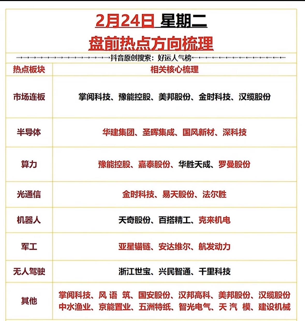2月24日盘前热点梳理:科技、军工、无人驾驶等板块强势!