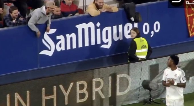 在对阵奥萨苏纳的比赛中,Vini听到一位奥萨苏纳球迷跟他说话,便站起来倾听。那位球迷告诉他: