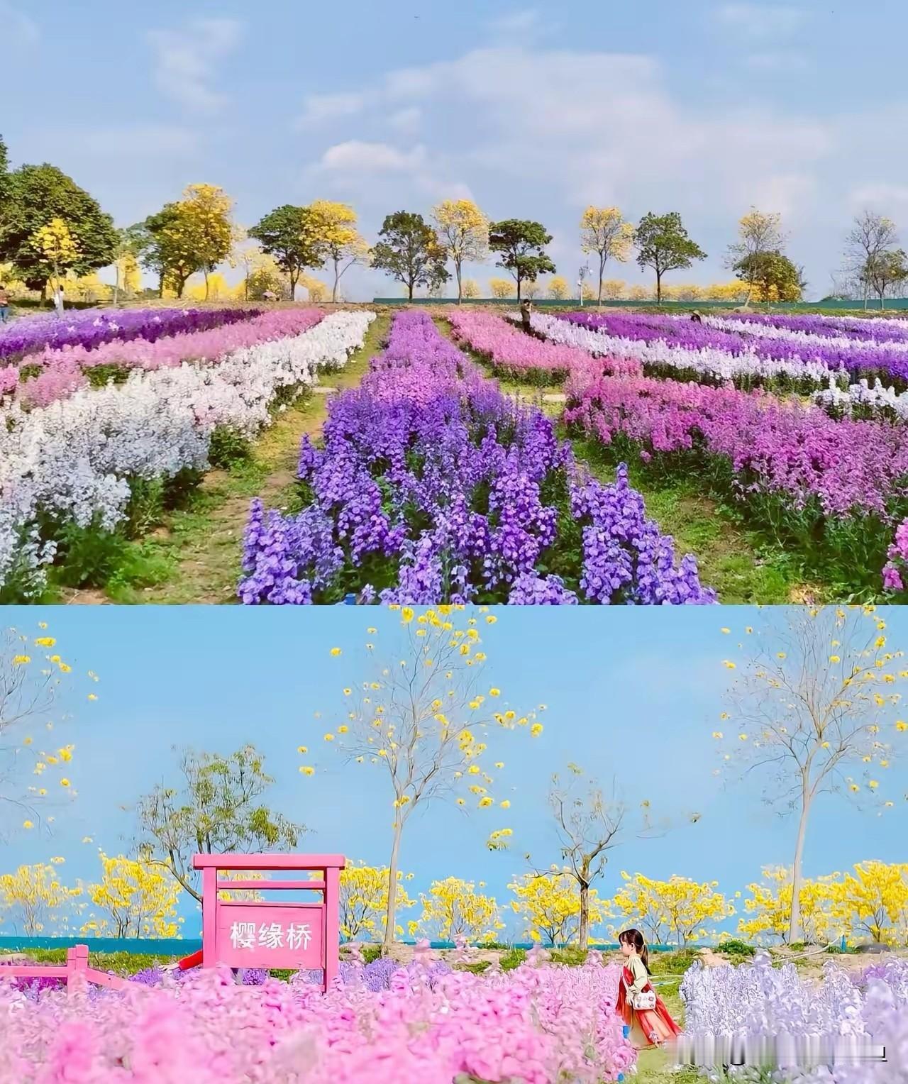 广州藏着华南最大樱花园!千亩樱花齐开,错过等一年 不用挤武汉,不用飞日本,广州出发1.5小时,藏着片能让你挪不动脚的樱花海! 千亩园子里,十几个品种的樱花挤着闹着开——粉的像揉碎的晚霞,白的透着月光似的清透,重瓣的花瓣层层叠叠,单瓣的随风飘起来像撒了把碎雪。走在花道上,头顶是密密匝匝的花簇,脚边是落樱铺的“粉白地毯”,随便往树下一站,花瓣落在发间肩头,不用找角度都是氛围感大片。领队带的道具超全,古风团扇、透明雨伞往手里一拿,瞬间穿越进漫画里的春天~ 不光有樱花!旁边的油菜花田铺成金灿灿的海洋,风一吹就跟着晃,蝴蝶蜜蜂追着花跑;郁金香在路边排着队开,红的黄的紫的,像打翻了调色盘;最妙的是那片黄花风铃木,满树金黄衬着樱花的粉,眼睛都看不过来~ 玩累了钻竹林!8公里的徒步线对新手特友好,脚下是软软的落叶,耳边是流水叮咚,竹子高得遮天蔽日,走进去像闯进了清凉的绿世界。路过茅坪村,必须蹲点吃竹筒饭——柴火烤得竹子滋滋冒香,劈开的瞬间,米饭混着竹沥的清香直往鼻子里钻,再配上个走地鸡,肉质紧实得嚼着都带劲,农家土灶炒的青菜,带着点锅气,比城里馆子香十倍! 行程表给你们码好: 早8点集合出发,10点钻进竹林洗肺,中午蹲农家院啃土鸡,下午扎进樱花园拍到手机没电,5点半往回赶,一天把春天的花和野趣全收进相册里。 装备不用复杂,穿双舒服的鞋,背个装零食的包,怕冷带件薄外套,想拍照就穿浅色系衣服,保证出片率翻倍。 这阵春风一吹,樱花花瓣就开始飘了,花期就这小半个月,再磨蹭可就真得等明年了。赶紧拽上爱拍照的搭子,把朋友圈的春天,换成自己踩过的泥土地和亲手摘的花瓣味儿~