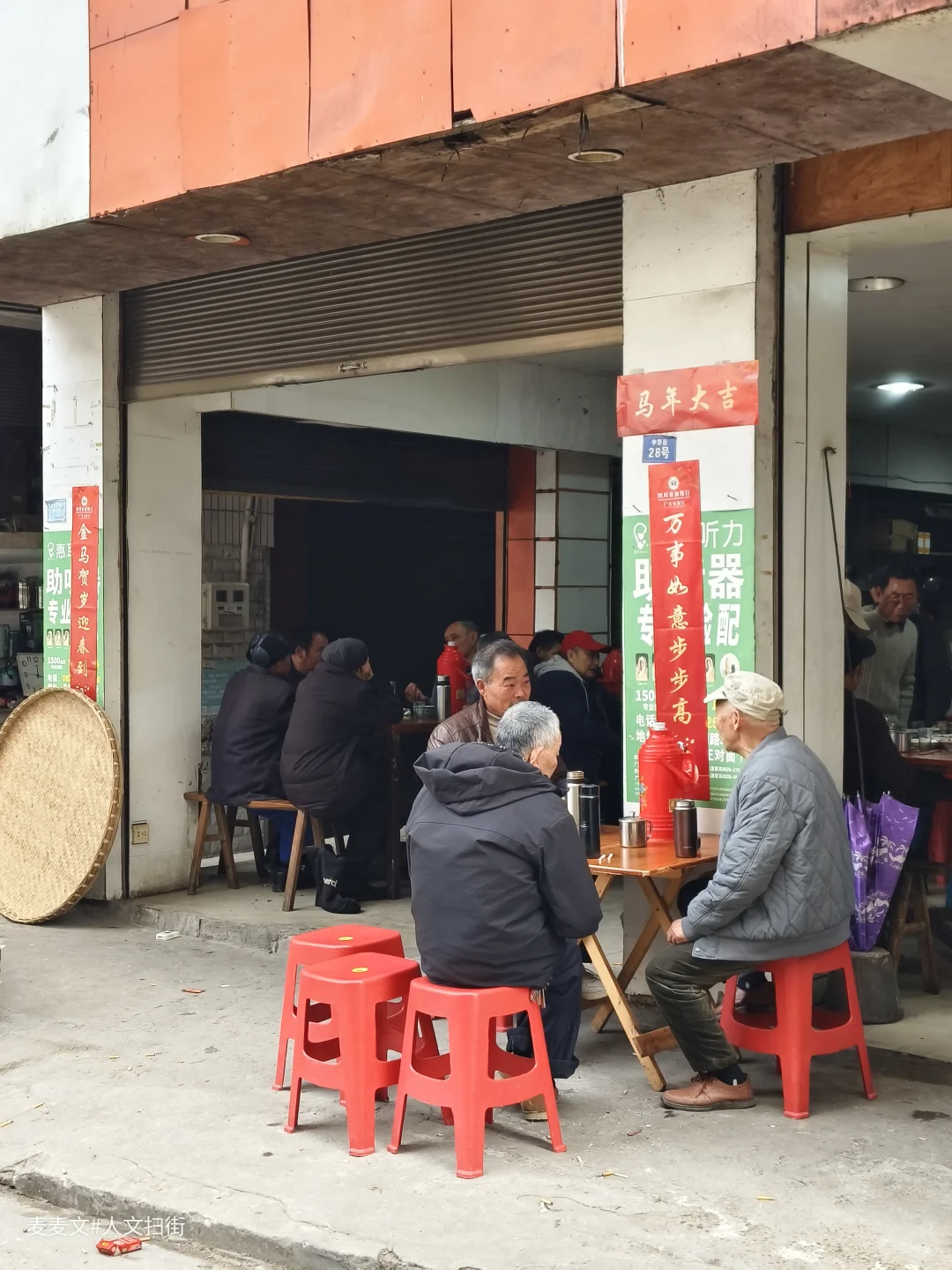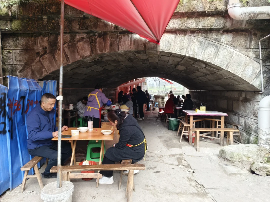 石拱桥下的早餐摊热气腾腾,竹编簸箕在巷口堆成小山,老人们在茶馆里摆着龙门阵,连算命先生的红布桌都带着几分烟火气。千年的县治旧址,如今是充满生活气的场镇。