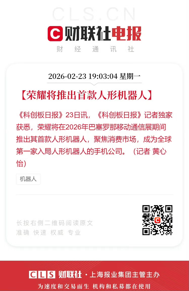 荣耀将推出首款人形机器人荣耀挺会玩,手机+人形机器人,3月1号发布坐等!