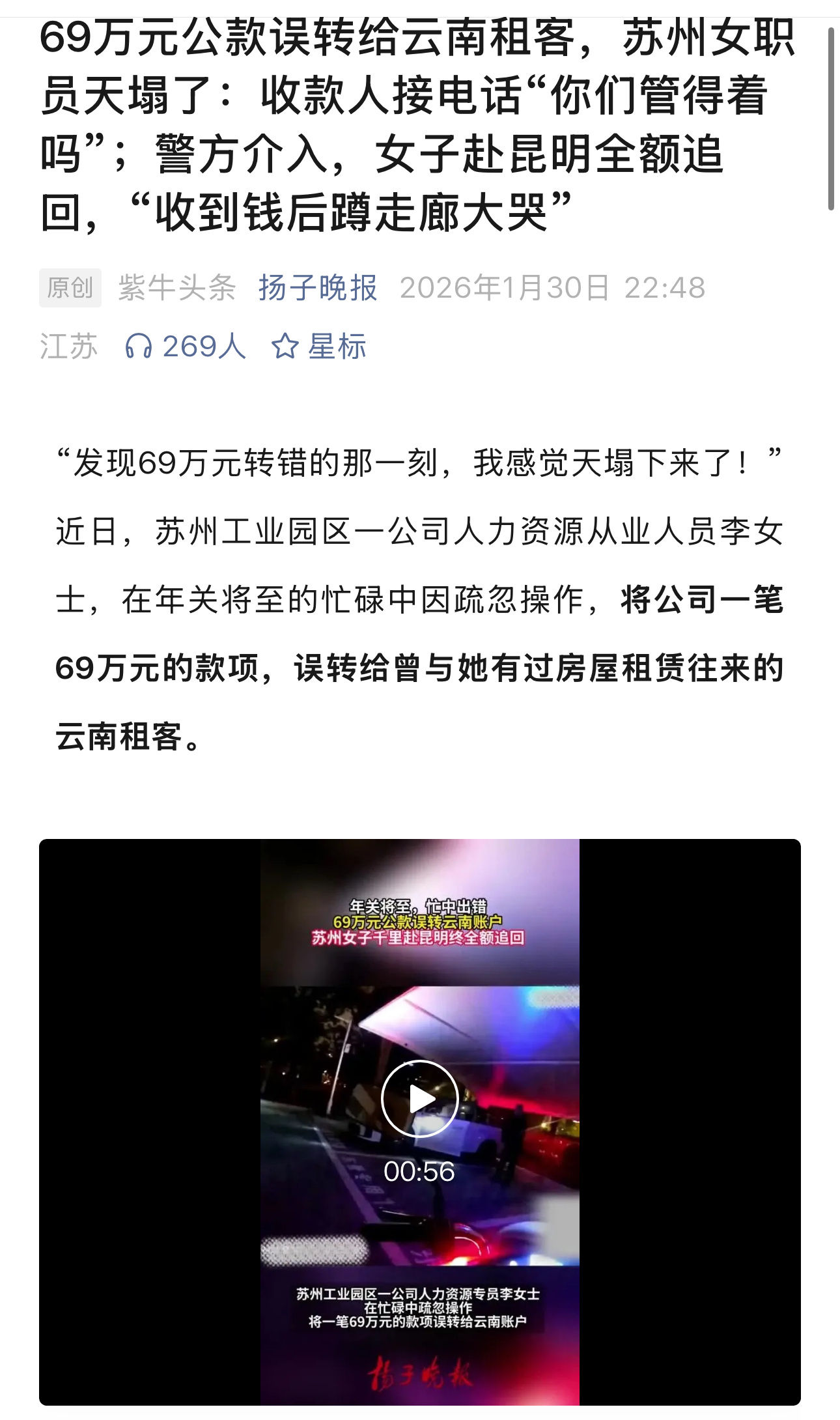这个词条里面的报道,有几个关键点没说清楚,找到了完整报道,才核实了几个信息。以后媒体能不能不要这样碎片化的报道
