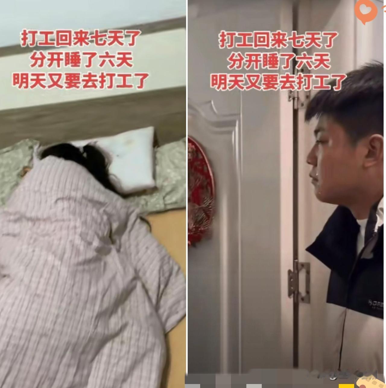 男子打工回家过年,一共放假7天,妻子和男子分居6天,男子第二天又要出去打工,男子情绪低落,不知道以后日子咋过? 在外打工风吹日晒一整年,省吃俭用就盼着回家能有口热饭、有句暖心话,可现实却泼了一头冷水。放假7天,分居6天,第二天又要背起行囊远走他乡,这份委屈和迷茫,只有打工人自己最懂。 很多人以为异地是感情变淡的元凶,其实根本不是距离的问题,是心已经不在一起了。你在外拼命赚钱养家,把所有辛苦都藏在心里,她在家却早已习惯没有你的日子,连最基本的心疼和陪伴都不肯给。 婚姻从来不是一个人单向付出,更不是靠忍就能长久。没有温度的陪伴,没有回应的牵挂,再坚固的感情也会被慢慢耗空。与其守着一个空壳婚姻,年年回家都心寒,不如早点想清楚,别让一年的奔波,最后只换来一肚子的心酸。 出门是为了生活,回家该是为了安心,如果家都变成了煎熬,这样的婚姻,真的还有必要硬撑吗?