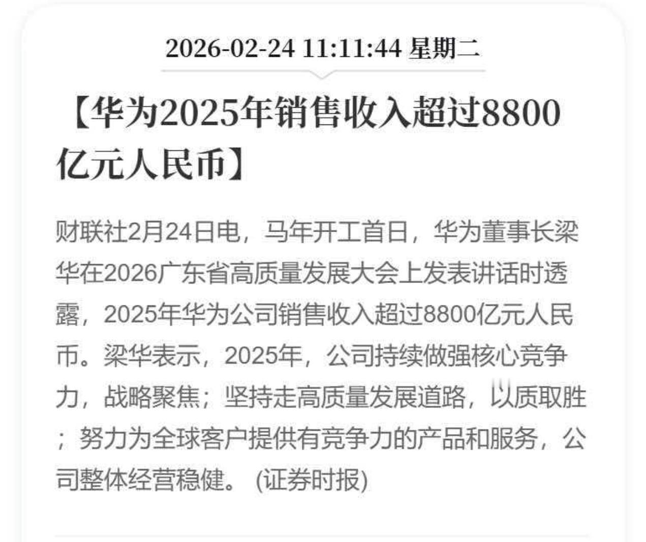 马年开工第一天,华为直接甩出了2025年的成绩单:全年销售收入超8800亿元。看来那个熟悉的华为又回来了。 今年华为很可能会发力中低端手机产品线。手机的销量预计会有不小的增长。大家一起期待吧。