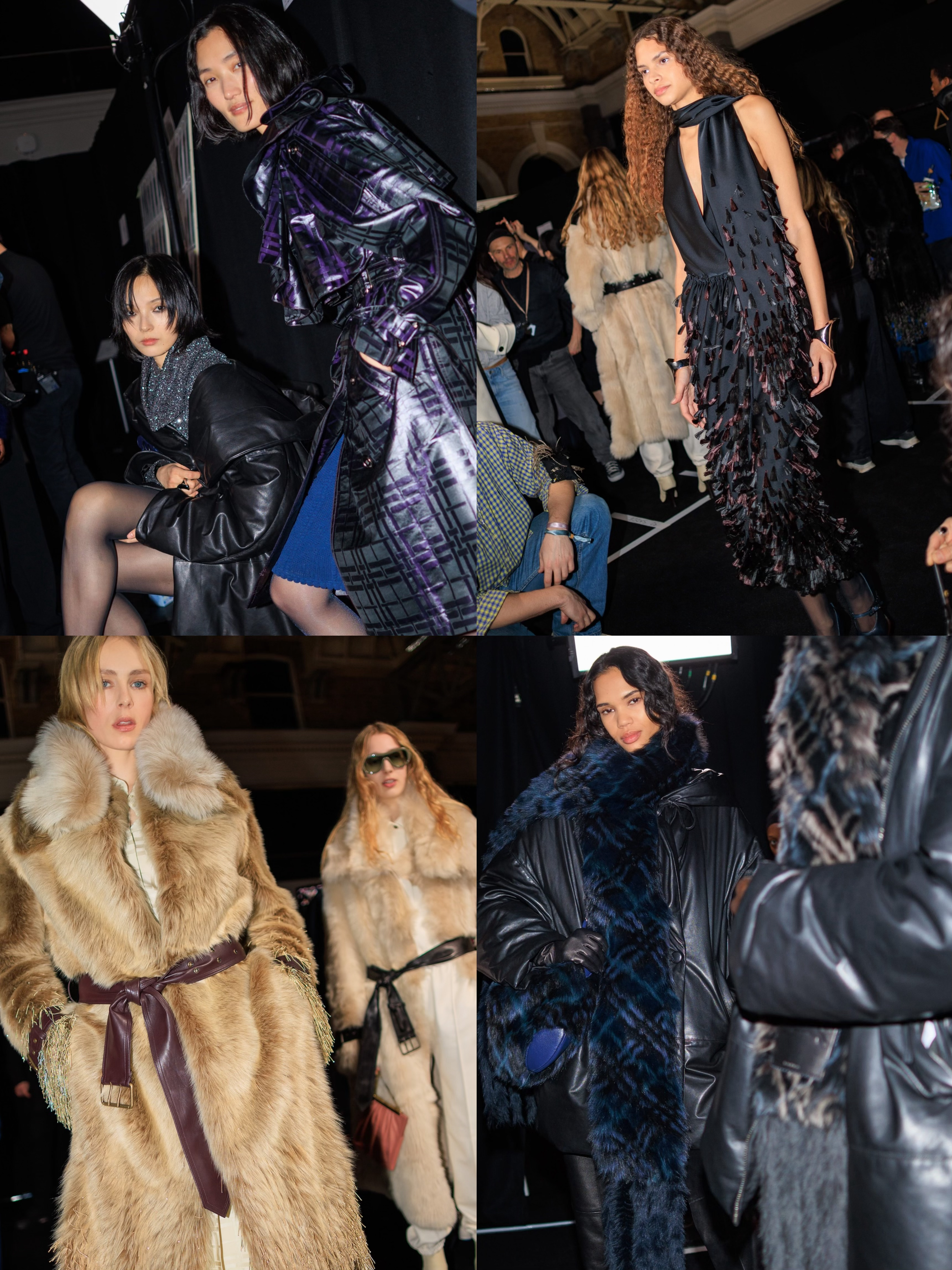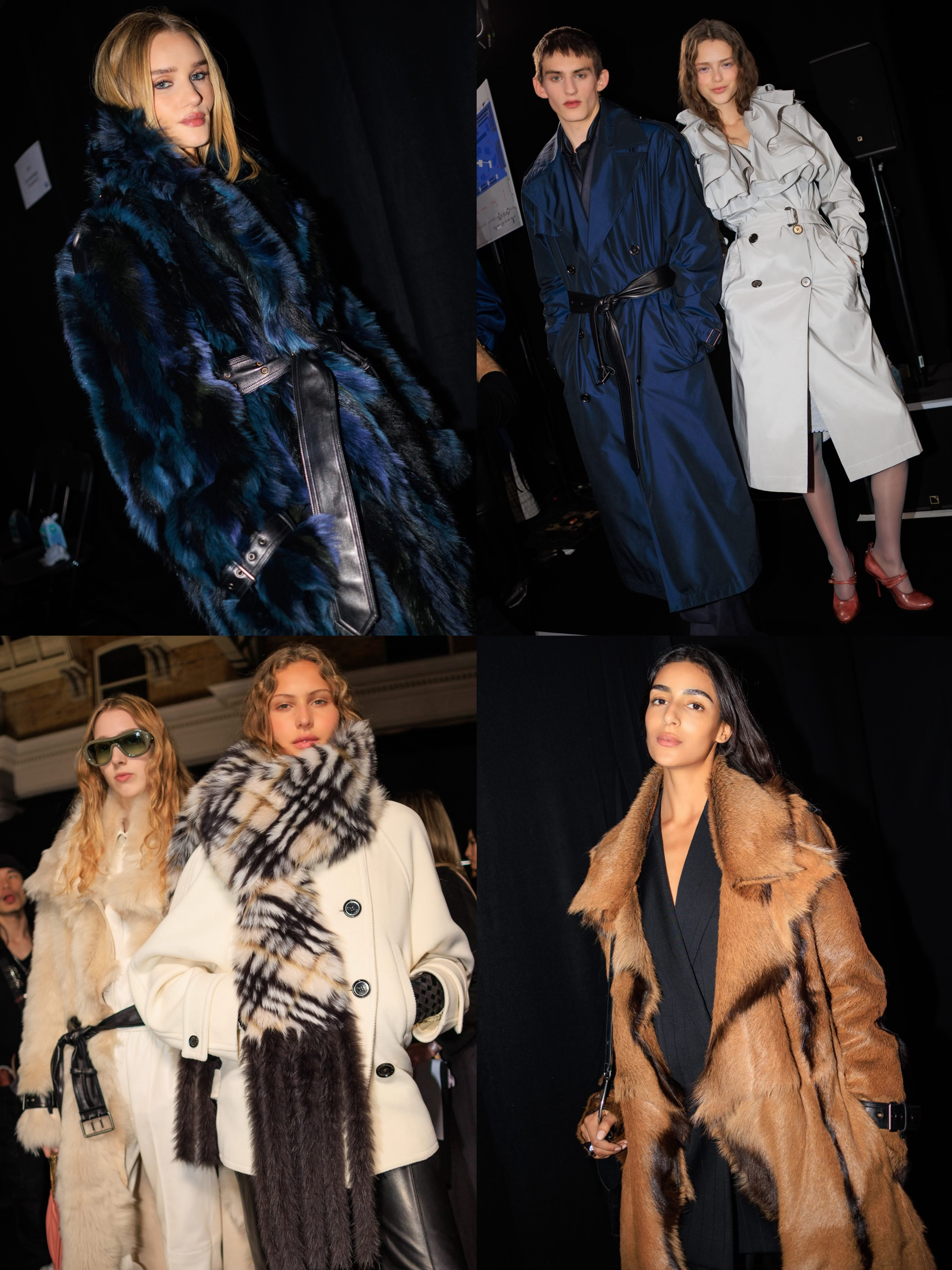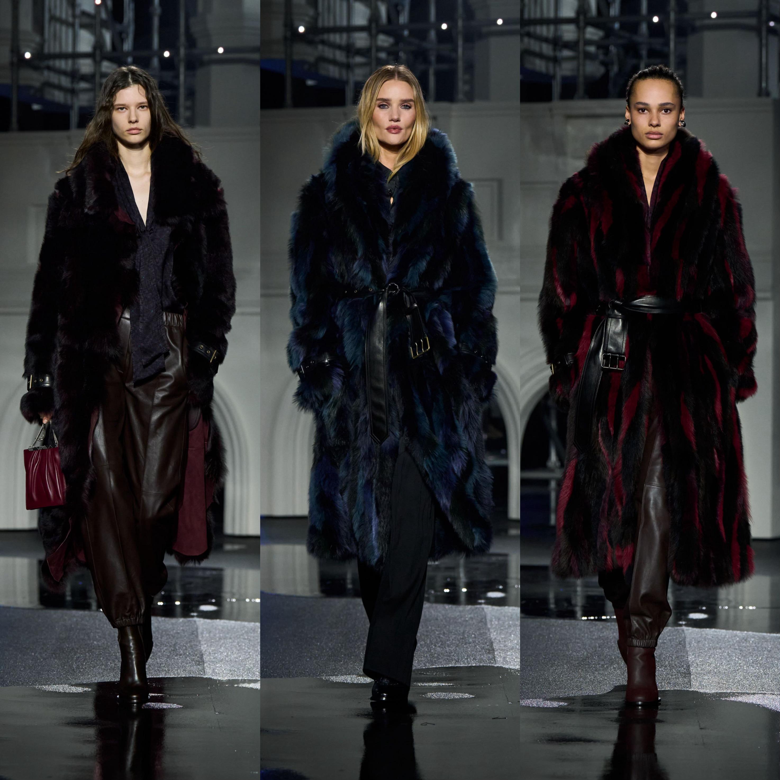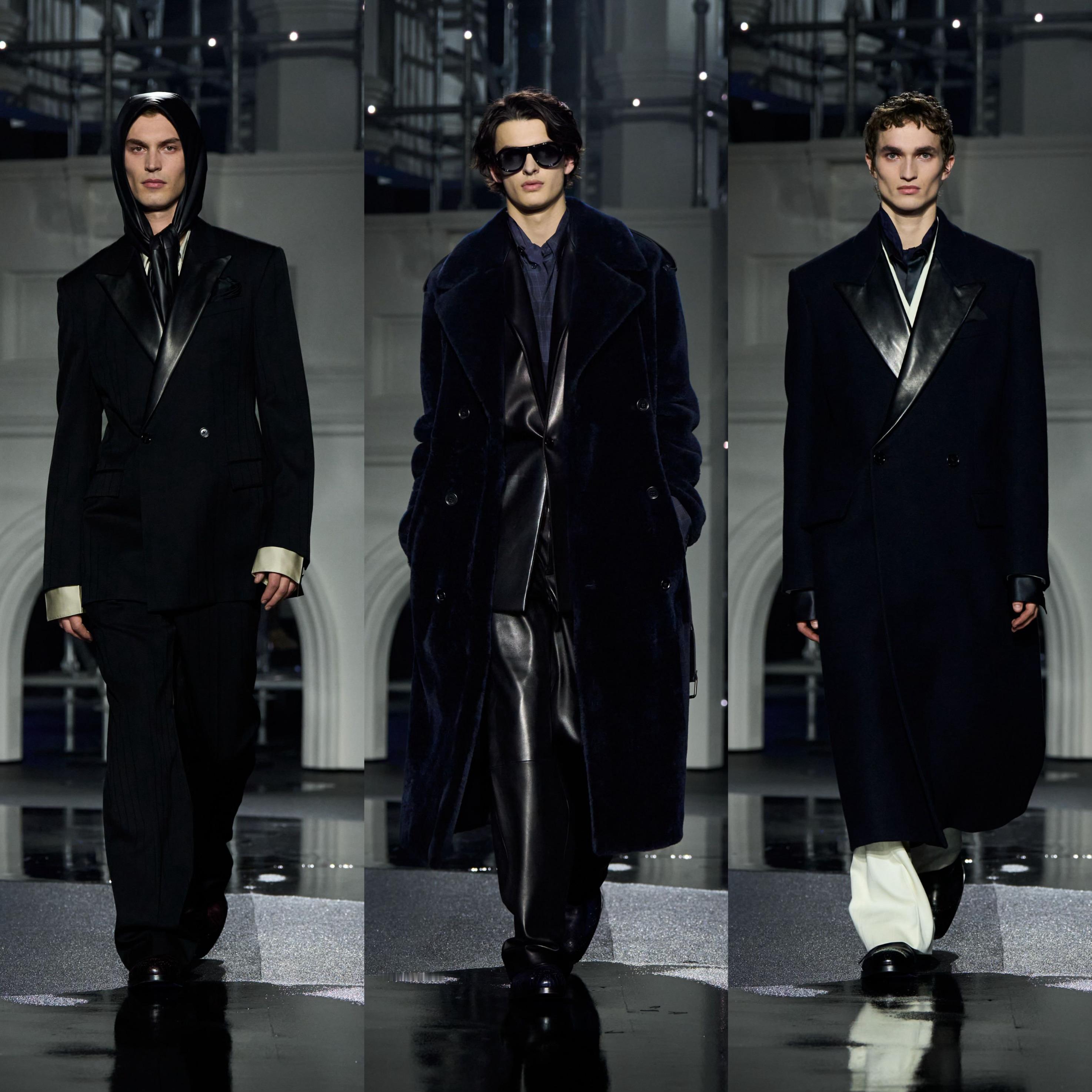 Daniel Lee 一如既往向品牌和英伦元素致敬,重塑标志性风衣与大衣,以利落廓形、丰富层次与精致结构展示,荷叶边、经典格纹的元素融入,另外本系列采用羊羔绒、皮革等高级面料尽显奢华质感。男款的外套、晚宴西装和丝质衬衣、皮革飞行夹克与风衣焕发优雅气息;利落摩登的女装犹如绰约多姿的夜行者,风衣内搭缎面裙装、外套的羊毛皮未经修饰或以格纹元素焕新演绎,风衣领口采用罗缎材质,华丽又雅致。