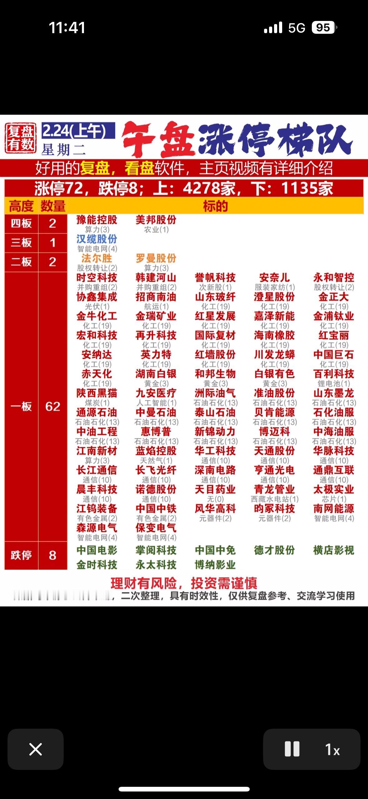 2月24日午盘的涨停梯队太精彩了!当日A股市场迎来“开门红”,上证指数高开1.15%,深证成指涨1.52%。 油气开采板块掀起涨停潮,指数涨近8%。通源石油、新锦动力20cm涨停,中远海能、准油股份等十余股也纷纷涨停。这主要是因为美伊冲突风险升温,美国原油库存大幅下降,供应收紧预期强化,油价维持在六个月高点附近。 光模块概念股同样火热,天孚通信、盛科通信涨超10%,华工科技涨停。另外,稀土永磁指数强势拉升,日涨幅达3%,天通股份涨停,铂科新材涨9.20%。这行情,真是让人看得热血沸腾!