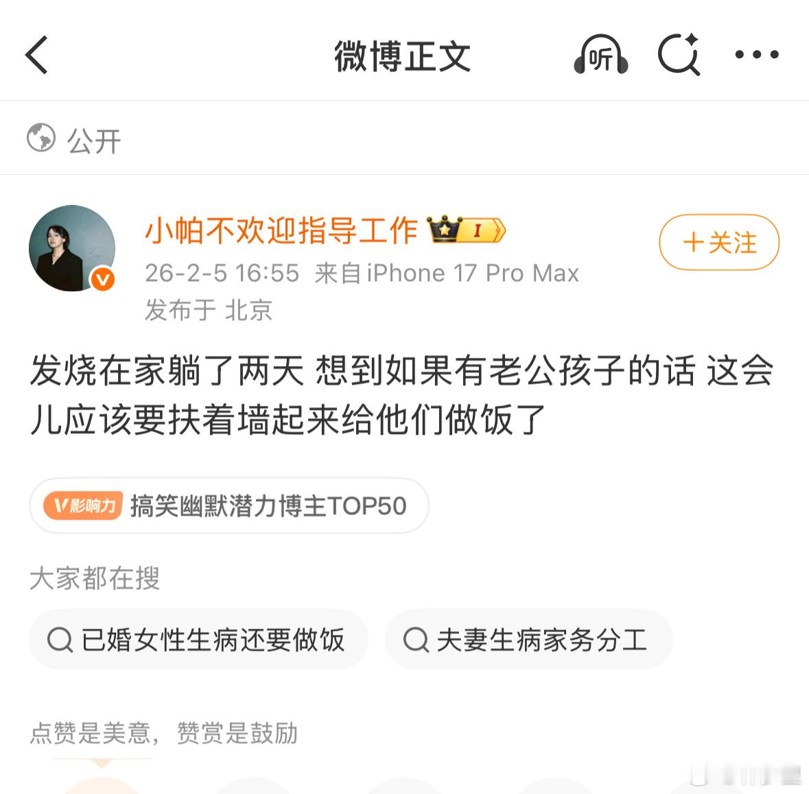 评论区有姑娘说自己生病的时候是老公照顾做饭,也被她粉丝追着骂。