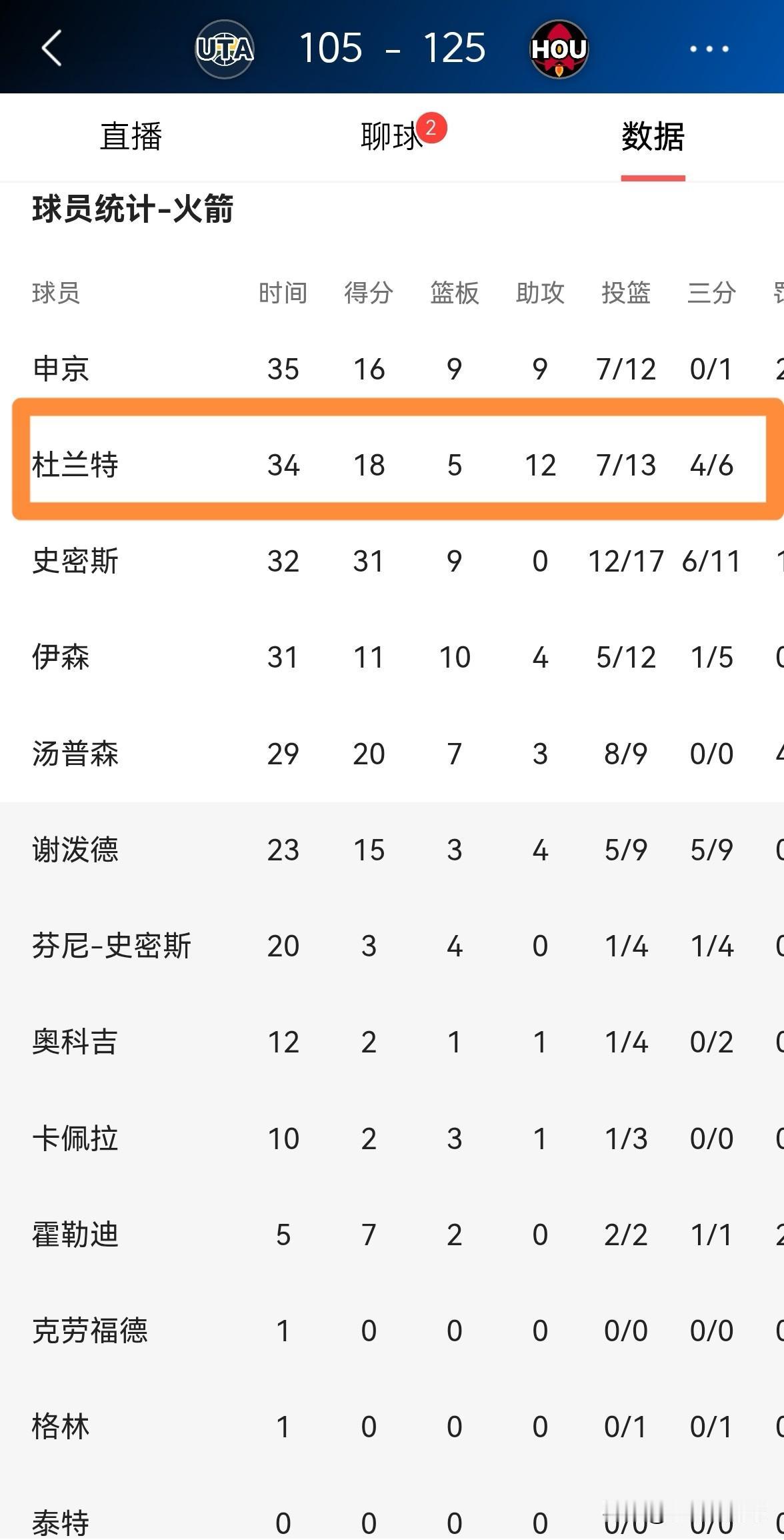火箭老将杜兰特真是太过分了,他又打破了火箭队史的一项记录!在今天火箭主场以125:105大胜爵士的比赛中,37岁的杜兰特砍下18分5篮板12助攻,其中12次助攻更是杜兰特火箭生涯的新高。 最让人感到不可思议的是,本场比赛过后,杜兰特正式成为了火箭队史上单场比赛送出至少12次助攻年龄最大的球员,创造了一项新的队史记录。值得一提的是,杜兰特在效力火箭的首个赛季中就打破了一项队史记录,你们说杜兰特是不是非常的过分?