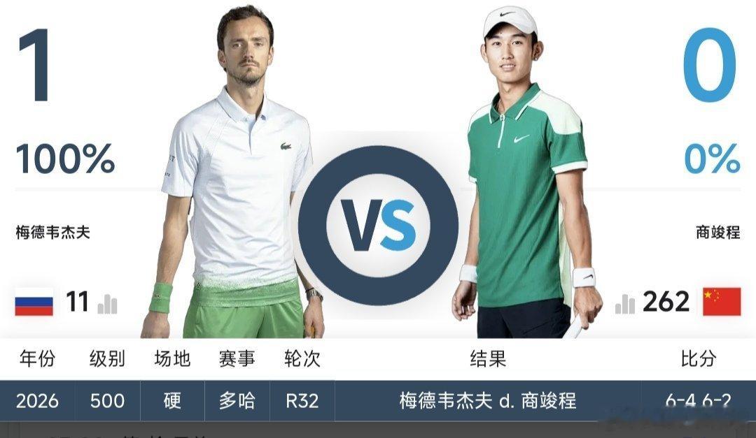 18:00左右 ATP500迪拜站男单第1轮商竣程🇨🇳 vs 梅德韦杰夫🇷🇺