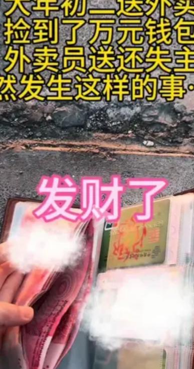 “破防了!”一女子大年初二,带着年幼的儿子送外卖,竟然捡到一个装着10000多元,还有身份证,医保卡,银行卡的钱包,她给失主送到家门口,竟然发生了这样不可思议的事,大过年的,直接把大家整破防了! 大年初二的早晨,菜市场周围人声鼎沸,摊位上的新鲜蔬菜、年货、鱼虾肉类堆得整整齐齐,空气中弥漫着浓浓的年味儿。 女子李女士正匆忙地穿行在摊位间,她怀里抱着一个小背包,肩上斜挎着外卖箱,手里还握着一部手机,不停地接收和确认订单。 她的儿子只有六岁,蹦蹦跳跳地跟在身旁,手里拿着一小袋糖果。 当天,天气虽冷,但阳光明媚。李女士穿着厚厚的羽绒服,外套有些旧,袖口磨破了一点,显示出她日常奔波的痕迹。 她手上戴着手套,指尖却露出冰凉的皮肤,因为要频繁地拿出手机确认订单,她不得不让手指暴露在寒风中。 小男孩穿着红色的棉服,脸蛋冻得微微发红,但他依偎在母亲身旁,乖巧得像个小绒球。 就在她准备骑上电动车去下一单的时候,地上一个黑色钱包映入眼帘。钱包微微被压在塑料袋和菜叶之间,像是被人遗落已久。 李女士弯下腰,轻轻拾起,打开一看,里面整齐地放着身份证、医保卡、银行卡,还有厚厚的一沓现金,数额足有一万多元。 她的心微微一紧,环顾四周,似乎没有人注意到这里有遗失物。她的手轻轻捏着钱包,想到如果丢了,对失主来说可能是一场大灾难。 尽管外卖订单紧迫,她还是决定要把钱包送回失主手里。 李女士沿着证件上的地址赶去,街道曲折,巷口狭窄,电动车在冬日阳光下闪着金属光。 她抱着儿子的小手,儿子蹦蹦跳跳地跟着,有些担心妈妈摔倒,嘴里不停问:“妈妈,这是谁的钱包呀?我们会拿错吗?” 李女士轻声安慰:“没事,妈妈送回去就好,别担心。”她的语气平静,但心里却有些忐忑:大过年的,这么多钱,如果失主不讲道理,她们会不会被误会? 不久,她找到了地址,是一栋三层的老式居民楼。她按响门铃,片刻后,一位中年男子开了门,神情有些惊讶。 男子身着家居服,眼镜后闪着关切的光,他看到手里拎着钱包的女子和身旁小男孩,眼神瞬间变得柔和:“这是……我的钱包?” 李女士点点头,把钱包递过去:“大叔,这钱包是您丢的,我捡到的,赶紧还给您。”男子接过钱包,检查一遍,确认里面所有物品完好无损,他的眼睛湿润了。 大年初二,本该和家人一起享受团圆的时光,他原本焦急、甚至沮丧的心情在这一刻彻底松开了。 男子情绪激动,连连道谢:“天哪,你太好了,你们母子辛苦了,还特地送回来。”他看着李女士略显疲惫的神情和小男孩微微泛红的小脸,心里一阵酸楚。 外卖配送的辛苦,他想象得到,尤其是大年初二,这个母亲还要带着孩子奔波在外。他犹豫了一下,然后坚定地说:“你们辛苦了,这钱……这个钱包里的现金,你们收下吧,算是感谢费。” 然而李女士却摇了摇头,温柔而坚定:“大叔,分文不取,您安心。我们还要赶去送外卖呢,时间来不及。” 男子一时语塞,他没想到会遇到这样的善良之人。大年初二,本是年味最浓的日子,她却还要忙碌生计。见女子坚持,他叹了口气:“好吧,那上来吃点东西再走吧,我妻子正在下饺子。” “不了,真的不好意思,我得赶着送外卖。”李女士依旧婉拒。 男子的眉头微微舒展,他默默地走进厨房,不一会儿端出一盒热气腾腾的饺子,饺子皮薄馅多,香气扑鼻。 男子笑着说:“那你们先吃点东西,我知道你们忙,这盒饺子带走也行。”随后,他从钱包里抽出一个红包,递给李女士:“这是给小朋友的压岁钱,你们路上注意安全。” 李女士接过红包,小男孩的眼睛一下子亮了,兴奋地握住红包:“妈妈,我们收到压岁钱啦!”她蹲下来,轻轻抚摸儿子的头:“宝贝,这只是叔叔的心意,我们要谢谢人家的好心。” 男子点点头,微笑着目送母子俩骑上电动车,踏上了回外卖的路。