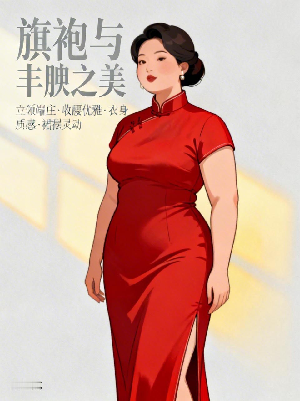 旗袍赋予女性的美是多样的。对于丰腴成熟的女性,旗袍是绝佳拍档。立领衬得脖颈挺拔,添了端庄;收腰自然贴合,展现优雅轮廓;流畅衣身包容圆润弧度,转化为高级质感;开叉裙摆让步履沉稳又灵动。 历经时光打磨的她们,少了浮躁,多了内心丰盈,与旗袍古典气韵相融,无需刻意打扮,站着就是一幅中式画卷,自带迷人气场。 微胖女性穿旗袍也别有韵味,能将传统的温柔祥和之美展现得淋漓尽致。不过,穿旗袍最好身形有曲线、身材比例完美,这样才能把旗袍独特的美发挥到极致。