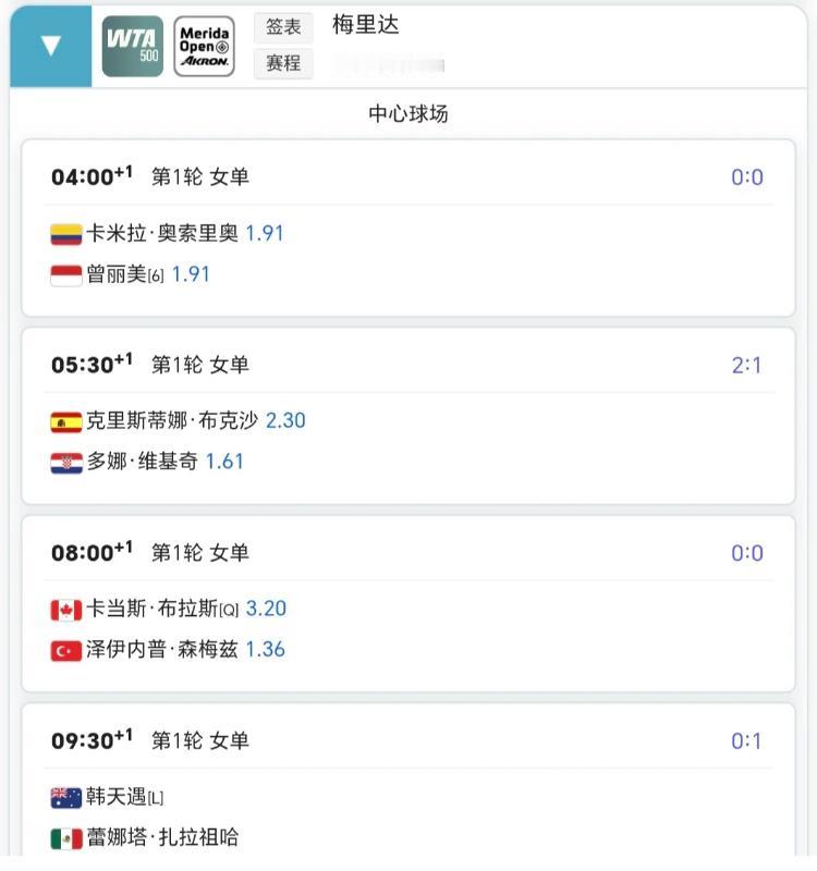 2月24日网球赛程!! 迪拜500赛下下签继续,昨晚张之臻对阵1号种子阿利亚西姆,今晚轮到商竣程对阵3号种子梅德韦杰夫,唯有加油吧!!饼哥在墨西哥500赛也不是啥好签,明天上午11:00首轮也是直接对上3号种子鲁德… 2月25日8:30张帅也将在梅里达500赛出战女单首轮,正常过关没问题…… 奥斯汀250赛,劳模佩古拉将以1号种子身份出战,但开打时间是早上5:30…..