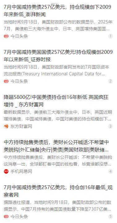 一旦中国今天清空全部7307亿美元美债,明天我们自己的出口企业,就将接不到一张新订单!因为我们抛出的是美债,换回的,却是瞬间暴跌的美元。 麻烦看官老爷们右上角点击一下“关注”,既方便您进行讨论和分享,又能给您带来不一样的参与感,感谢您的支持! 美国财政部公布的 2025 年 7 月国际资本流动报告显示,中国持有美债规模降至 7307 亿美元,创下 2009 年以来新低。 这一数据公布后,网络上立刻出现不少激进声音,主张立刻清空全部美债,以此表达态度、降低风险。 这类观点看似解气,却忽略了金融市场的连锁反应,也忽视了外贸行业的现实处境,属于只看表面、不顾后果的片面判断。 如果真的在一天内集中抛售这 7307 亿美元美债,次日全球汇市就会出现剧烈震荡,美元会出现大幅贬值。 我们抛售美债换回的是美元,而美元瞬间暴跌,意味着同等金额的美元能兑换的人民币大幅减少,人民币被动大幅升值。 人民币快速升值,会直接削弱中国出口商品的价格竞争力,原本有优势的产品在国际市场上变得更贵,海外采购商会立刻转向其他国家。 对于大量依赖价格优势的中小出口企业来说,订单会快速流失,甚至出现接不到一张新订单的情况,工厂开工率会大幅下滑。 从 2022 年到 2025 年,中国一直在持续、渐进、有序地减持美债,并非盲目抛售,而是稳步调整外汇储备结构。 在减持美债的同时,国家同步增加黄金储备,增持欧元等其他币种资产,通过多元化配置分散单一资产带来的风险。 这种操作既降低了对美债的依赖,又守住了汇率稳定的底线,保障外贸行业平稳运行,是兼顾安全与发展的理性选择。 进入 2026 年 2 月,市场分析文章普遍指出,激进清空美债看似强硬,实则是短期自损的操作,会重创本国实体经济。 国家始终坚持稳汇率、保外贸的组合政策,用循序渐进的方式优化外汇资产,拒绝极端化、情绪化的金融操作。 外汇储备管理的核心是服务于国家经济安全与民生发展,既要防范外部风险,也要守护国内企业与就业市场的稳定。 盲目激进的金融动作,往往会让普通从业者和实体企业承担最直接的损失,理性、稳健、有序才是长期有利的选择。
