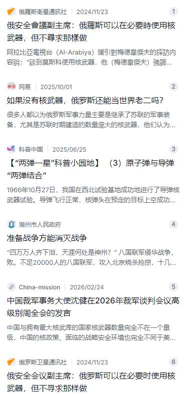 中国如果没有核武器中国还存在吗?梅德韦杰夫说,要是没核武器,俄罗斯早就没了,强大的苏联解体俄罗斯继承了前苏联大部分的武装力量,依然是军事实力排在世界第二位,即便如此,梅德韦杰夫还是敏感的认为要是没核武器,俄罗斯早就没了,我也很想说一句:富裕起来中国没有核武器还能生存下去吗? 麻烦看官老爷们右上角点击一下“关注”,既方便您进行讨论和分享,又能给您带来不一样的参与感,感谢您的支持! 这是一个非常沉重但又不得不直面的话题。最近看到俄罗斯的安全会议副主席梅德韦杰夫说了一句大实话,他说要是俄罗斯没有核武器,这国家早就没了 。这话从一个军事强国的领导人嘴里说出来,听着有点扎心,但细想还真是那么回事儿。苏联解体后,俄罗斯继承了那堆庞大的家底,常规军力哪怕排在世界第二,面对整个北约的挤压,心里还是不踏实,最后能睡得着觉的,还是导弹发射井里那点家当。把这个道理往自己身上一套,咱们也得琢磨一下,如今中国富裕起来了,要是手里没那个“打狗棍”,还能不能安安稳稳地过自己的小日子? 咱们得先把目光往回看。打开中国近代史,那就是一部让人不忍卒读的血泪账。1840年鸦片战争,人家英国才来了四千人,就把拥有八十万大军的清王朝打得找不着北 。到了1900年,八国联军拼凑起来不到两万人,竟然长驱直入攻破了北京城,慈禧太后带着皇帝连夜逃跑,留下的就是那被烧成废墟的圆明园和还不完的赔款 。那时候中国穷吗?其实在很长一段时间里,中国的GDP在世界上也是数得着的,但财富在坚船利炮面前就是待宰的肥羊,人口再多也只是统计数字,因为没有能御敌于国门之外的杀手锏。 时间再往后推到新中国成立初期,虽然我们站起来了,但面临的威胁一点都没少。那时候西方大国手里攥着核武器,动不动就拿出来晃两下,搞核讹诈。尤其是在抗美援朝那会儿,以及后来台海局势紧张的时候,美国人多次放出狠话,威胁要对中国动用核武器,那感觉就像头顶上悬着一把剑,随时可能掉下来 。那种憋屈和压力,没经历过的人是很难体会的。就是在那样一穷二白、甚至吃饭都成问题的艰苦条件下,咱们的老一辈科学家硬是勒紧裤腰带,在大漠戈壁里隐姓埋名,终于在1964年10月16日,让罗布泊那一声巨响震惊了世界 。 从那天起,中国的安全形势就彻底变了样。那个圆明园被烧、使馆区被划为外国人地盘的时代,才算真正画上了句号。紧接着1966年,咱们又搞成了“两弹结合”,也就是原子弹能装到导弹头上,这意味着我们不光有蛋,还有了能下蛋的鸡,具备了实战反击的能力 。这套家什一亮出来,那些曾经对我们虎视眈眈的势力,才开始真正学着用一种平等、甚至是忌惮的眼光来看待新中国。据说原子弹成功爆炸后,退守到台湾的老蒋特别害怕,想请求美国人帮忙先发制人,把我们的核设施打掉,但美国掂量了半天,最后还是没敢动手 。为什么?因为一旦动手,谁也不知道会引发什么后果,这其实就是威慑的力量。 有人可能会说,现在世界格局变了,经济全球化,大家都是做生意的,不打仗了。这话听听就好,可千万别当真。看看现在的国际环境,围堵、制裁、贸易战、代理人战争,哪一样消停过?一个国家如果没有足够硬的骨头,光靠有钱是守不住家产的。就在最近的外交部例行记者会上,咱们的发言人也再次重申,中国始终奉行自卫防御的核战略,坚持不首先使用核武器的政策,把核力量维持在国家安全需要的最低水平 。这番话翻译过来就是,咱们发展核武器不是为了跟谁比谁胳膊粗,不是为了称霸,纯粹就是为了防身,为了保护十四亿人过日子的权利不被任何人打断。 梅德韦杰夫的感慨,其实道出了大国博弈最底层的逻辑。在这个并不太平的世界上,生存从来不是靠别人施舍的,也不是靠委曲求全换来的。对于今天的中国来说,核武器就是那个“压舱石”,它静静地待在那里,可能一辈子也用不上,但只要它在,那些想把战争强加给我们的人,就得在动手前掂量掂量,能不能承受得起那个代价。所以回到那个问题,富裕起来的中国如果没有核武器还能生存吗?答案是能生存,但可能又要回到那个看别人脸色、随时可能被掀翻餐桌的时代。这枚“争气弹”托起的,不仅是国家的尊严,更是子孙后代那漫长而安稳的岁月。