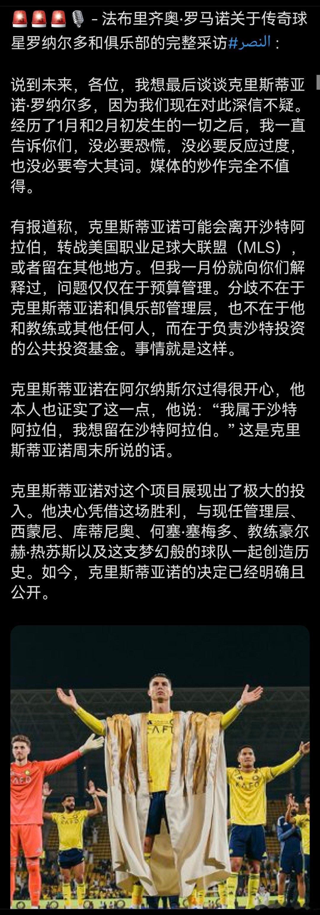C罗 沙特媒体利雅迪亚发文歌颂C罗继去年11月在Tourize全球论坛上发表著名