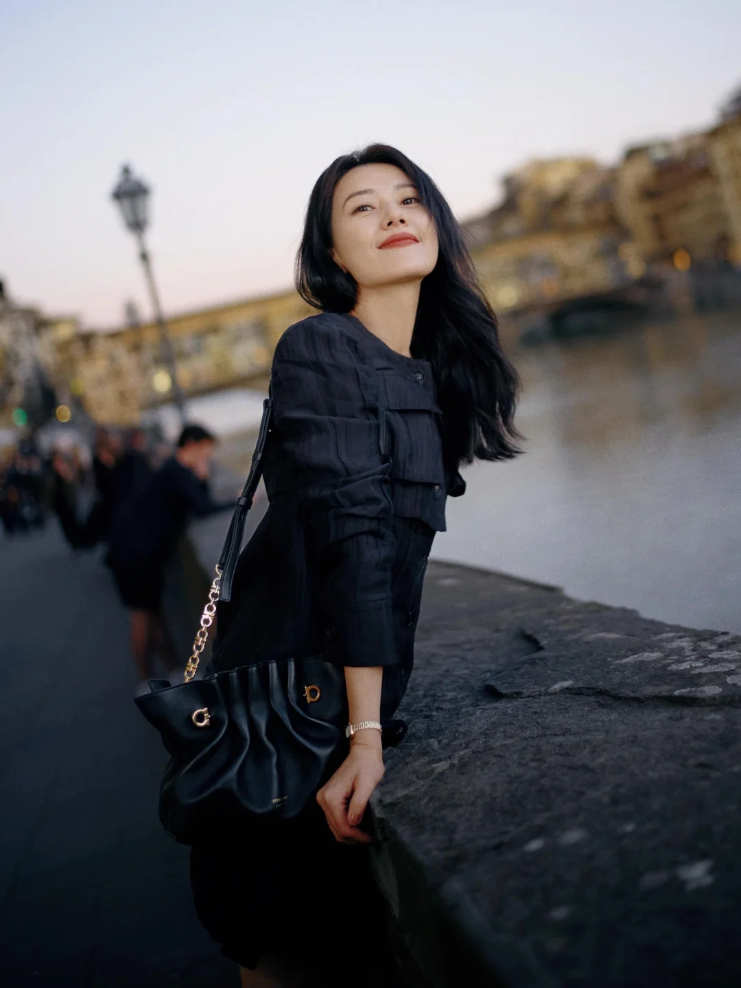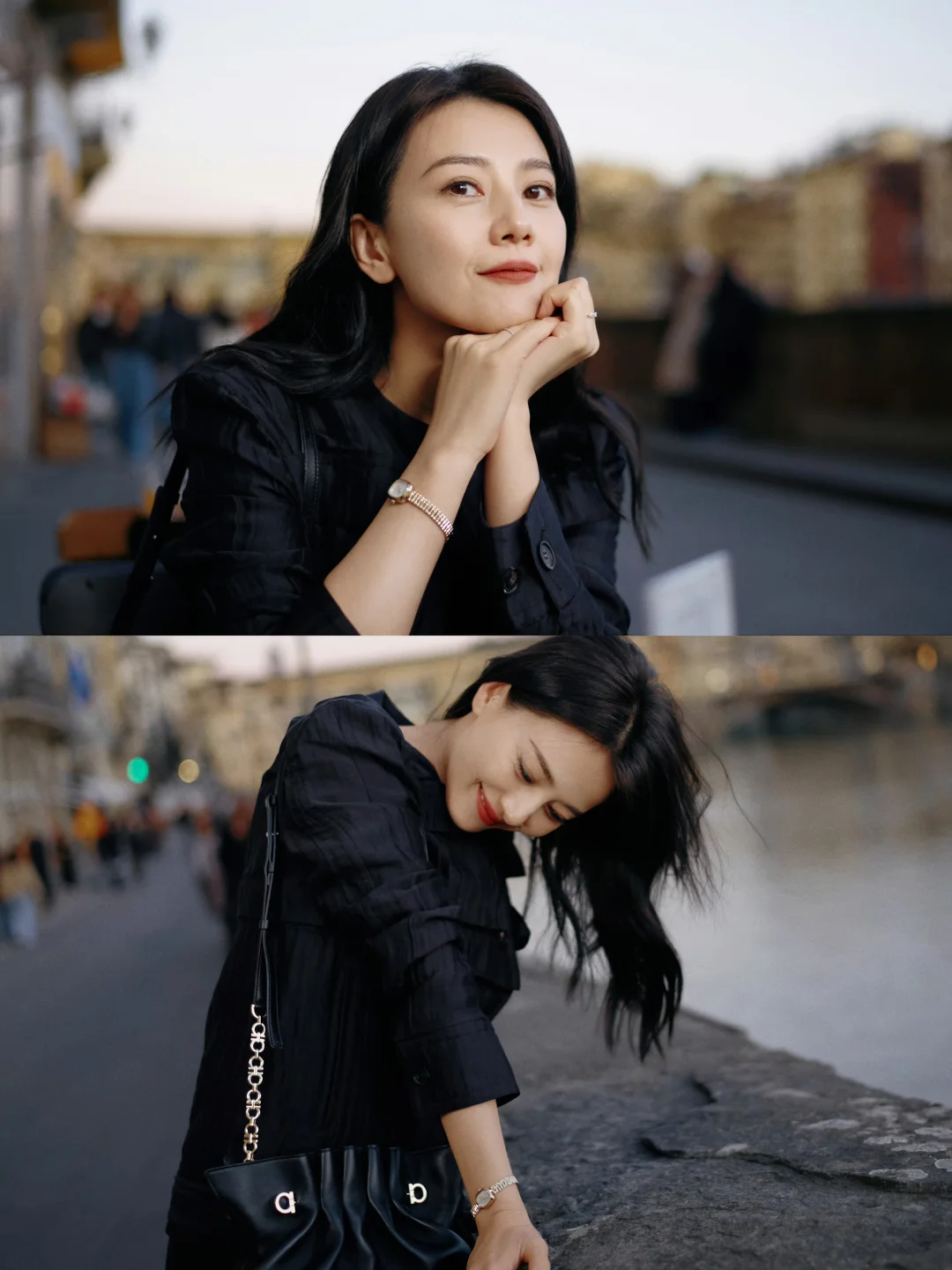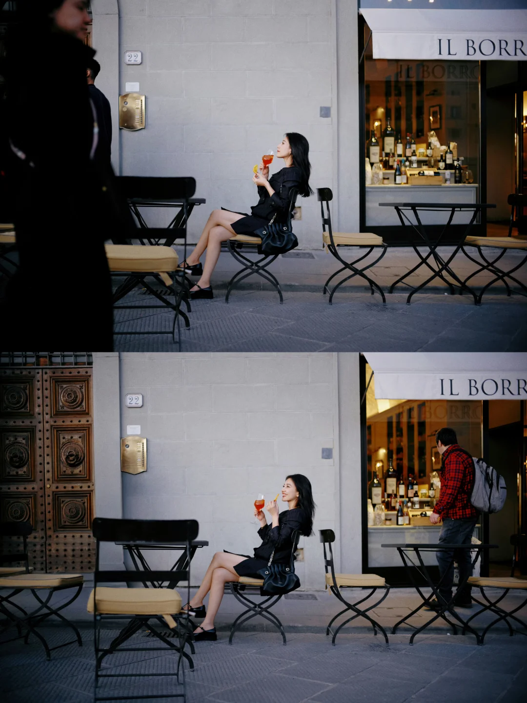 她的照片里,藏着一种与意大利相处的方式。如果你也在寻找意大利旅拍灵感,可以像她这样:在威尼斯的水岸边,闭眼感受海风,让发丝与海鸥入镜,把自己融进那片蓝色的波光里;在阿诺河畔的暮色里轻倚回眸,让老桥和灯光做氛围感的背景;在老城墙下抱着冰淇淋随性而坐,用街头烟火气拍出鲜活日常;在老酒馆外,端着一杯Spritz,在人来人往的街头,独享一份意大利式慵懒与自在。不用刻意摆拍,像她一样放松自在,就是出片的状态。