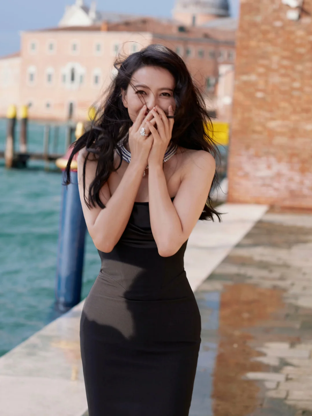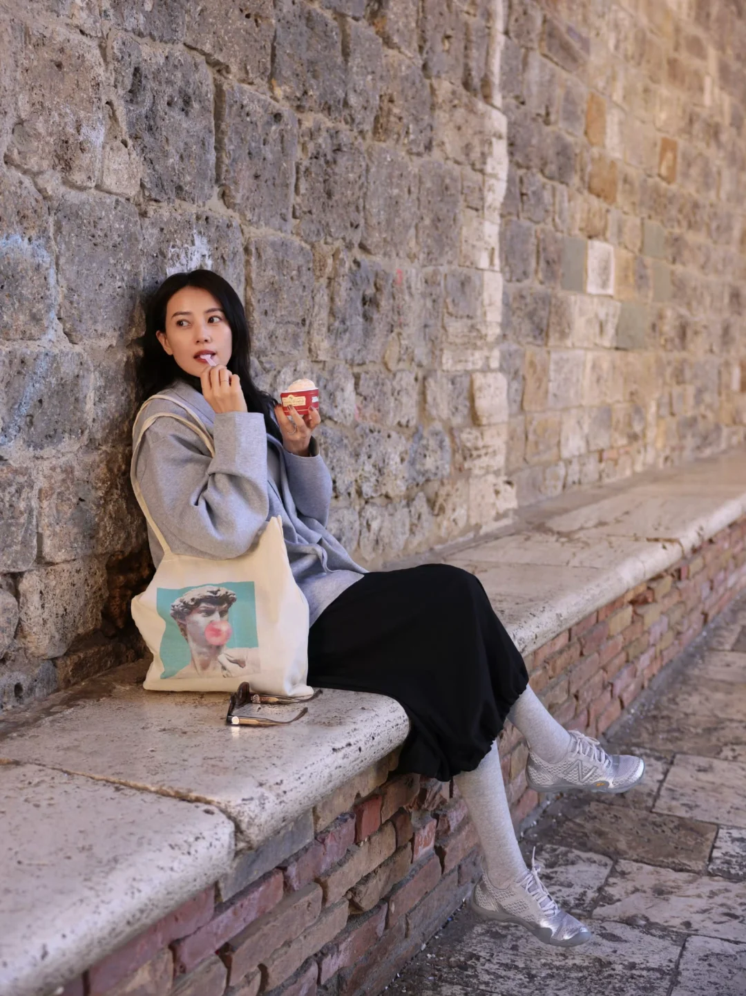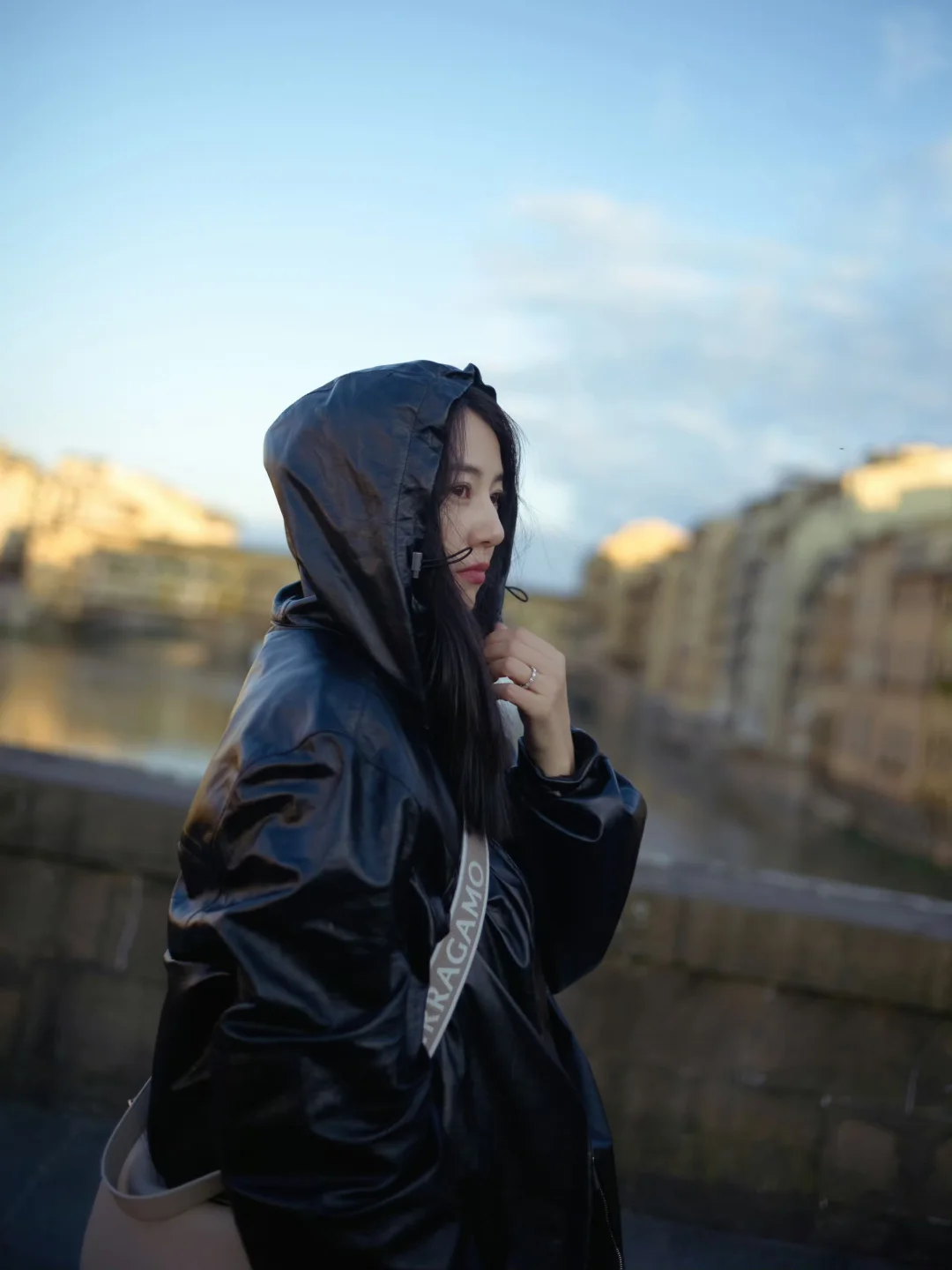 她的照片里,藏着一种与意大利相处的方式。如果你也在寻找意大利旅拍灵感,可以像她这样:在威尼斯的水岸边,闭眼感受海风,让发丝与海鸥入镜,把自己融进那片蓝色的波光里;在阿诺河畔的暮色里轻倚回眸,让老桥和灯光做氛围感的背景;在老城墙下抱着冰淇淋随性而坐,用街头烟火气拍出鲜活日常;在老酒馆外,端着一杯Spritz,在人来人往的街头,独享一份意大利式慵懒与自在。不用刻意摆拍,像她一样放松自在,就是出片的状态。