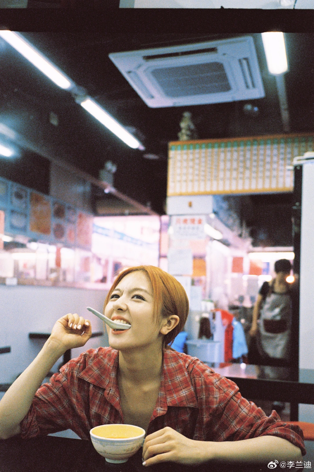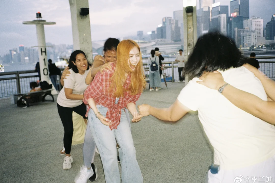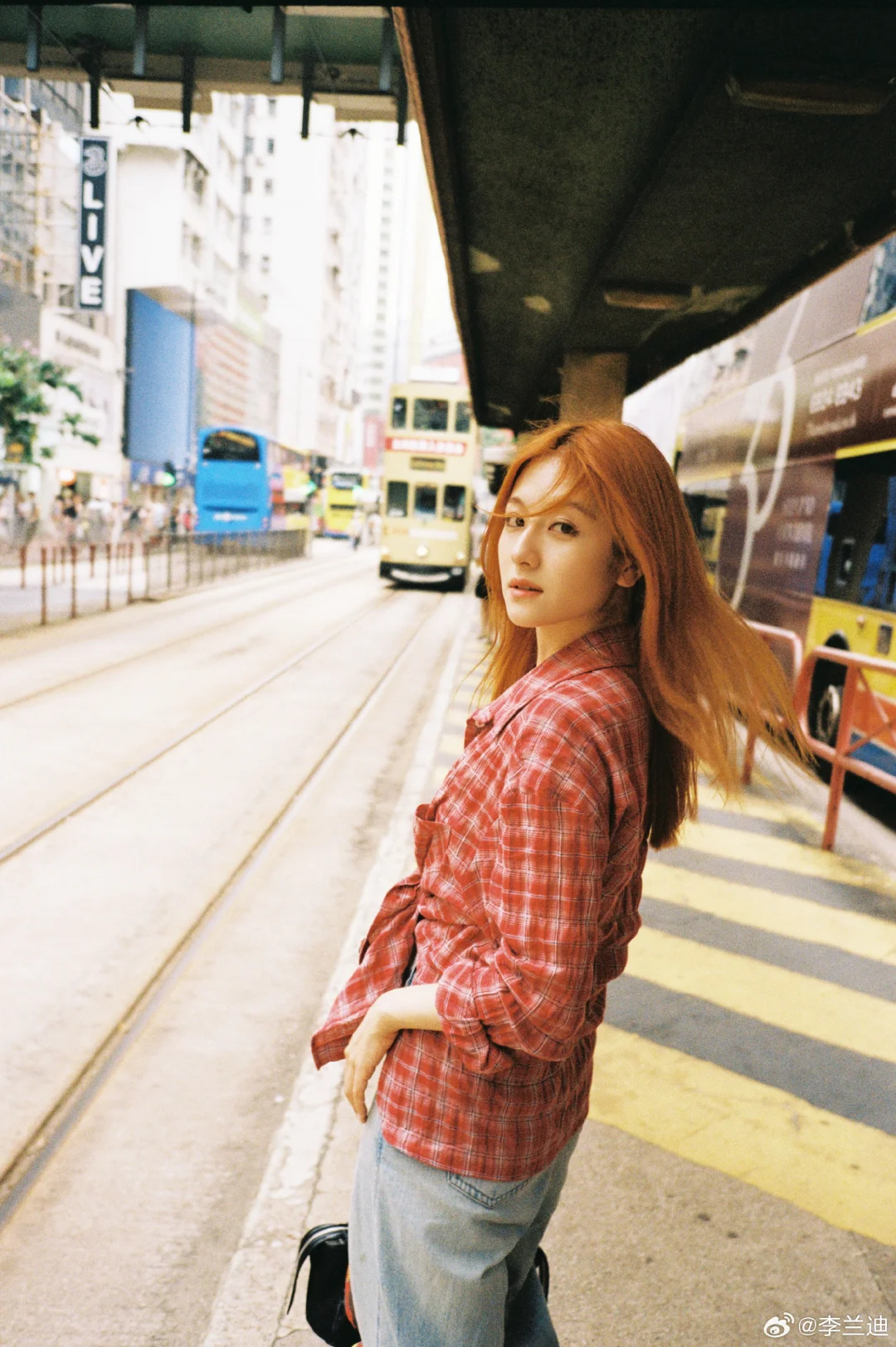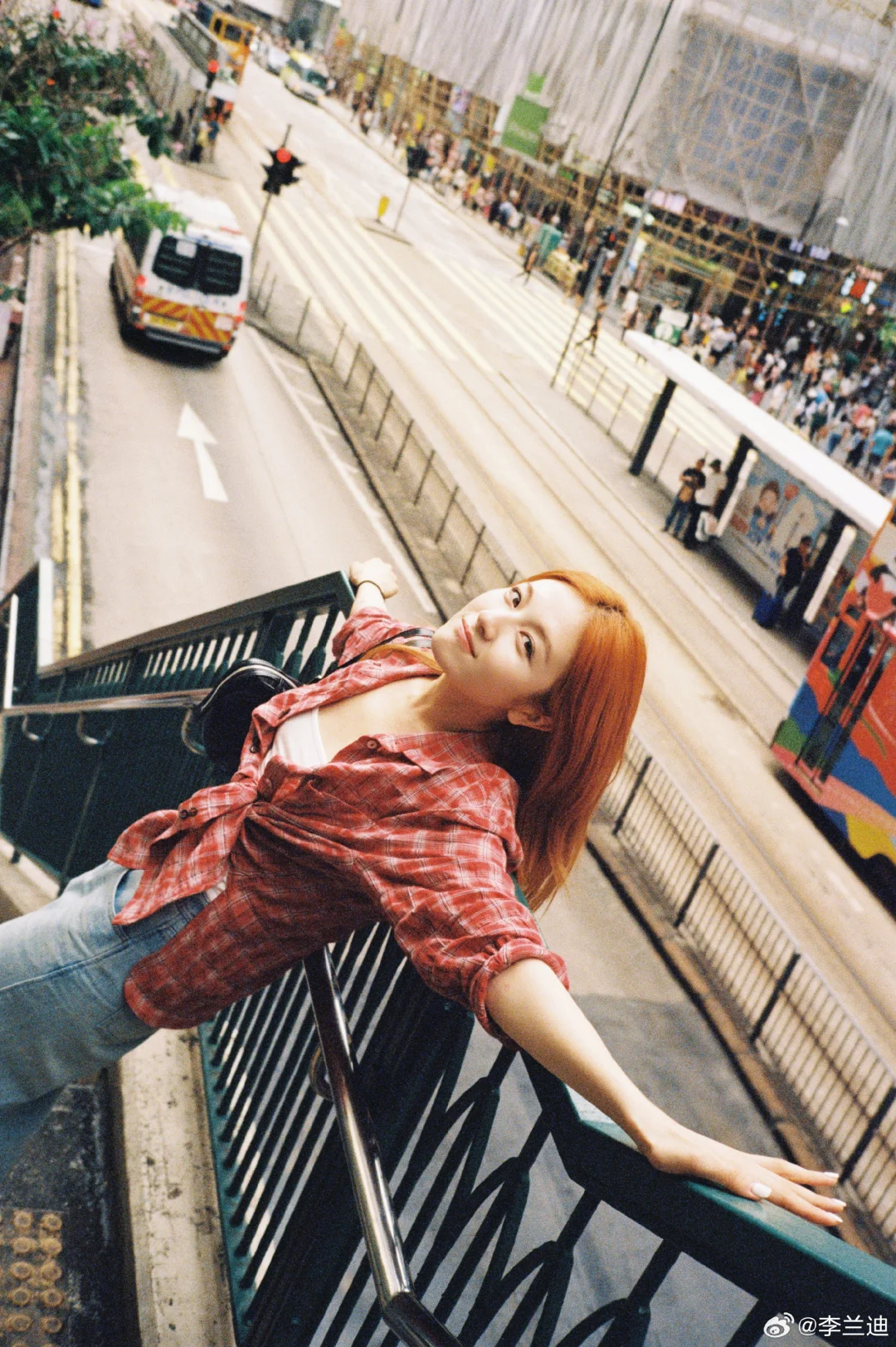感觉没有什么风格是李兰迪驾驭不了的。橘色头发、红色格子衬衫,她把复古港风拍出了鲜活的生命力和随性的松弛感。茶餐厅里咬勺子的俏皮,天桥上伸展肢体的自在,叮叮车上晃悠的随性,码头边和当地人玩游戏的欢快——每一个瞬间都浸透着生活气息,她把自己完完全全地融进了这座城市。