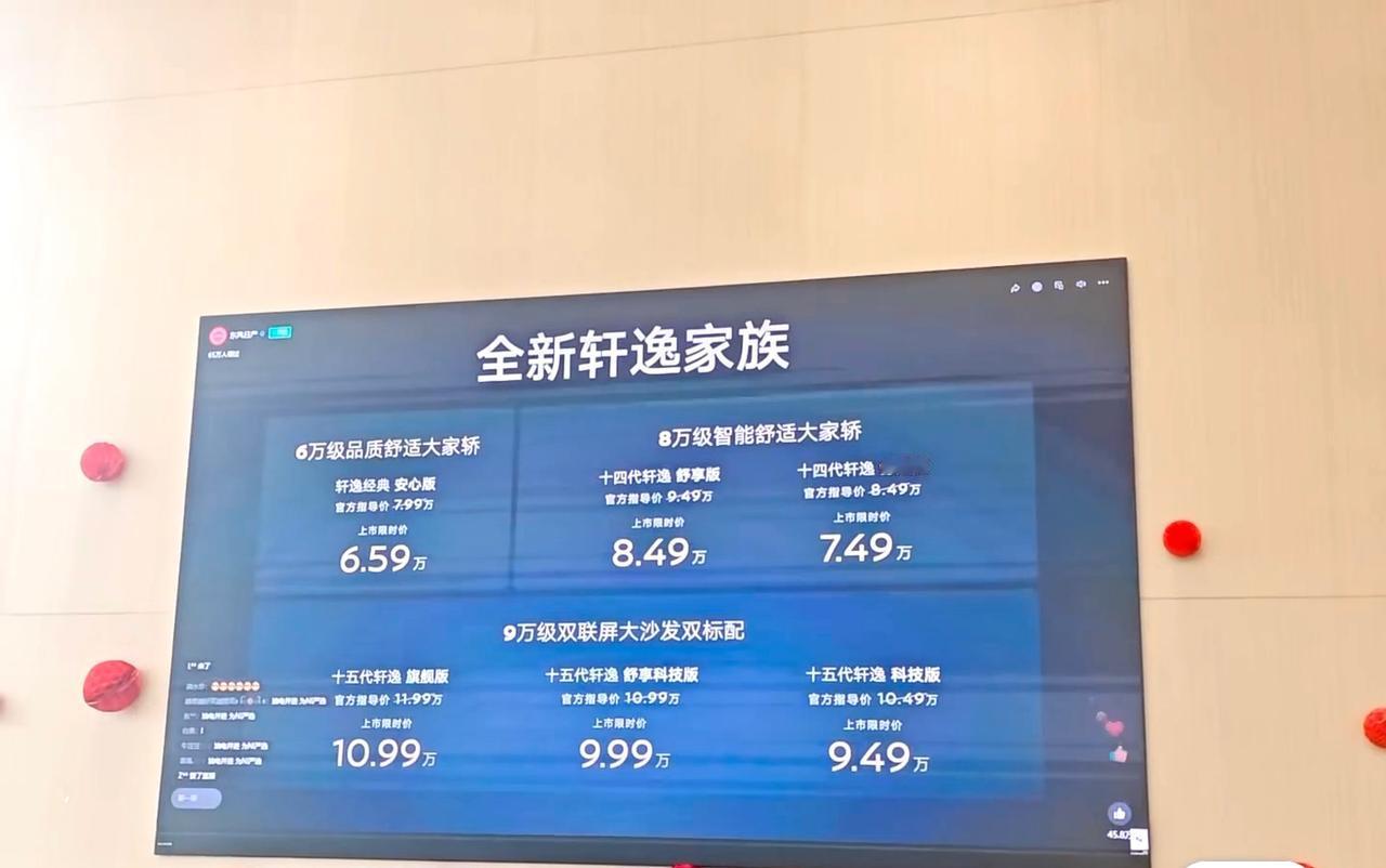 轩逸开启价格战啦!十五代轩逸限时降价,最高直降1.5万,瞬间成了性价比之王。从11.99万的旗舰版到9.49万的舒享科技版,每一款都超划算。这波操作太绝了,花小钱办大事,准备购车的姐妹,还等什么呢?