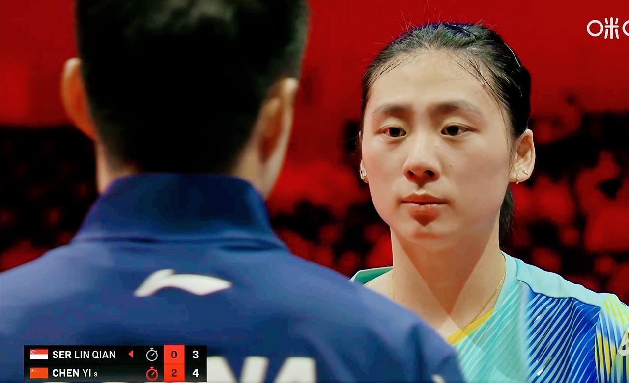 好消息!陈熠3:0拿下对手, 坏消息,16强对手是桥本帆乃香! 前两局陈熠失误较多, 但是对手舒麟茜较弱, 陈熠还是2:0领先, 第三局 开局舒麟茜3:1领先, 陈熠连赢3球, 4:3反超了, 舒麟茜叫了暂停。 我听于子洋让陈熠更大胆一点。 暂停回来之后, 陈熠加强了正手进攻, 9:4领先。 10:5拿到局点 11:7拿下对手。