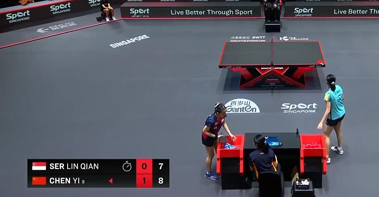 吓死了!陈熠关键球发球失误! 第一局 陈熠11:8艰难拿下。 第二局 陈熠减了质量, 也减少失误 把球路打简单了, 3:1开局, 舒麟茜追到了4:4平。 陈熠拉开到8;5 舒麟茜又追到了7:8 此时陈熠叫了暂停, 但是显示牌上显示舒麟茜叫的暂停, 暂停回来舒麟茜追到了9;9, 陈熠发球失误! 舒麟茜10;9拿到局点, 最后陈熠13:11拿下。
