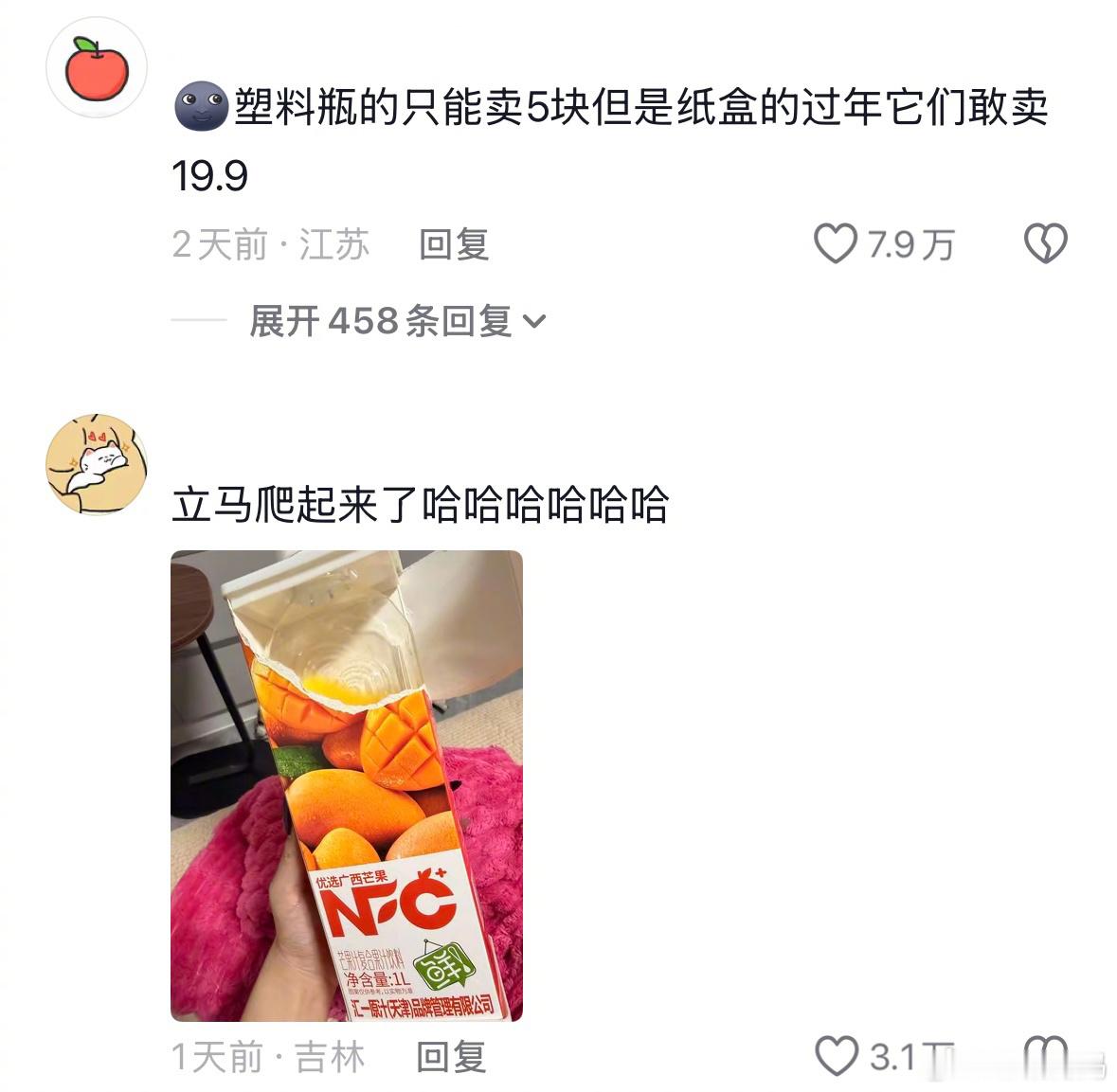不看这个评论区,都不知道纸盒饮料里面有瓶子