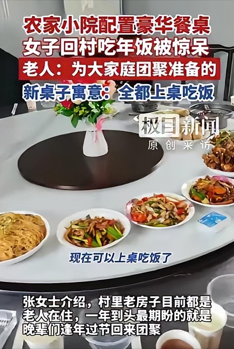 破防了!武汉一女子跟家人走亲戚,本以为是走走过场,不料,到了吃饭时,居然发现餐桌是电动,而且一张就能坐15人,和豪华酒店里的桌子一模一样,寓意:全都上桌吃饭!女子很开心:终于可以上桌吃饭了! 2026年大年初二,这位女子前往武汉城郊的亲戚家拜年,起初她只当是一次普通的走亲访友,没抱什么特别的期待,可刚走进堂屋,就被眼前的景象打动了。 原本不大的农家堂屋里,摆着一张超大的电动转盘圆桌,足足能坐下十五个人,精致的桌面搭配自动旋转的转盘,和高档酒店里的餐桌没什么区别,放在寻常农家院落里,非但不突兀,反而满是用心。 这张桌子最让人动容的,从来不是它的豪华配置,而是背后藏着的心意,就是要让家里所有人,都能堂堂正正坐在一张桌上吃饭。 在过去不少地方的过年习俗里,家庭聚餐总有着不成文的老规矩,遇上人多桌小的情况,女性、孩子常常没法坐上主桌,要么在厨房忙碌完吃些剩菜,要么挤在小桌边凑活,明明为团圆忙前忙后,却没法安安稳稳吃顿热乎的团圆饭,心里难免会觉得失落。 这种不是刻意偏心,却藏在习俗里的忽略,曾是很多人过年时的小遗憾。 而这张十五人的大圆桌,直接打破了这些老旧的规矩,没有主次之分,没有内外之别,白发的长辈、年轻的媳妇、调皮的孩子,全都围坐在同一张桌前,电动转盘缓缓转动,每一道菜都能公平地送到每个人面前,不用谦让,不用等待,更不用委屈自己。 女子之所以瞬间破防,绝非是惊叹餐桌的档次,而是终于等到了那份被重视的体面。 不用再躲在厨房忙碌,不用再迁就旧俗站着吃饭,能作为家庭里的一员,和所有人一起围桌而坐,吃着刚出锅的热菜,聊着家常,这份简单的幸福,远比山珍海味更让人暖心。 这些年,这样的变化其实悄悄发生在无数家庭里,那些不合时宜的老规矩慢慢被摒弃,大家越来越明白,团圆从不是讲究繁文缛节,也不是分出高低主次,而是一家人整整齐齐、一个都不落下。 过年的年味,从来不是靠死板的习俗维系,而是藏在尊重每一个家人、顾及每一份感受的细节里。 一张电动圆桌,转动的是饭菜,更是时代观念的进步,它用最朴素的方式,诠释了团圆的真正意义。 当每个家庭成员都能平等上桌、安心吃饭,这样的年,才最有温度,这样的家,才最有归属感。 大家对此怎么看?欢迎评论区留下您的观点!