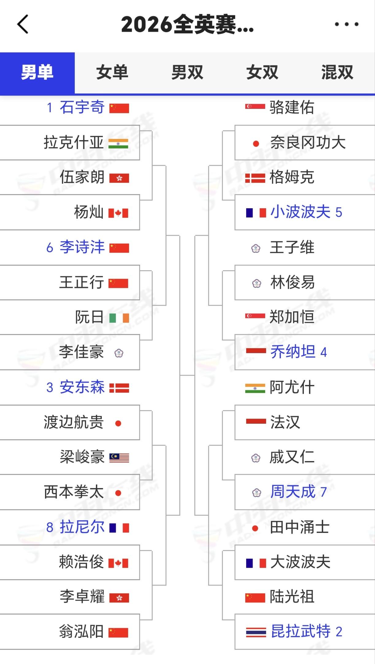 全英羽毛球公开赛国羽男单签运真不咋地! 2026年全英羽毛球公开赛将于2026