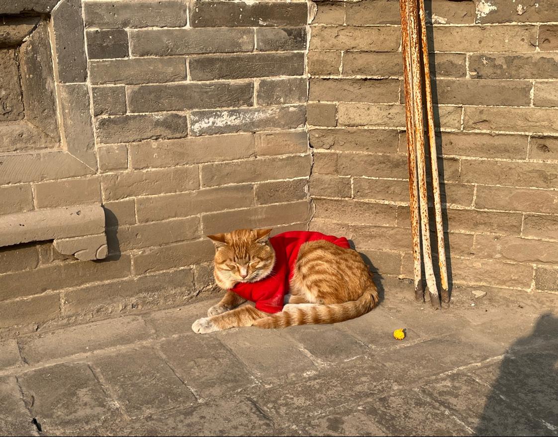 趴在县级文庙大门口晒太阳的猫咪,能在这个地方晒太阳,感觉应该是猫中的进士,或者起码是猫中的举人。 这只猫还穿的喜气洋洋的红色衣服,看得出来也是很乖的,也很有新年的气象。 拍摄于山西省临汾市襄汾县汾城古城景区中的文庙门口。 古建筑 文庙 汾城古城景区