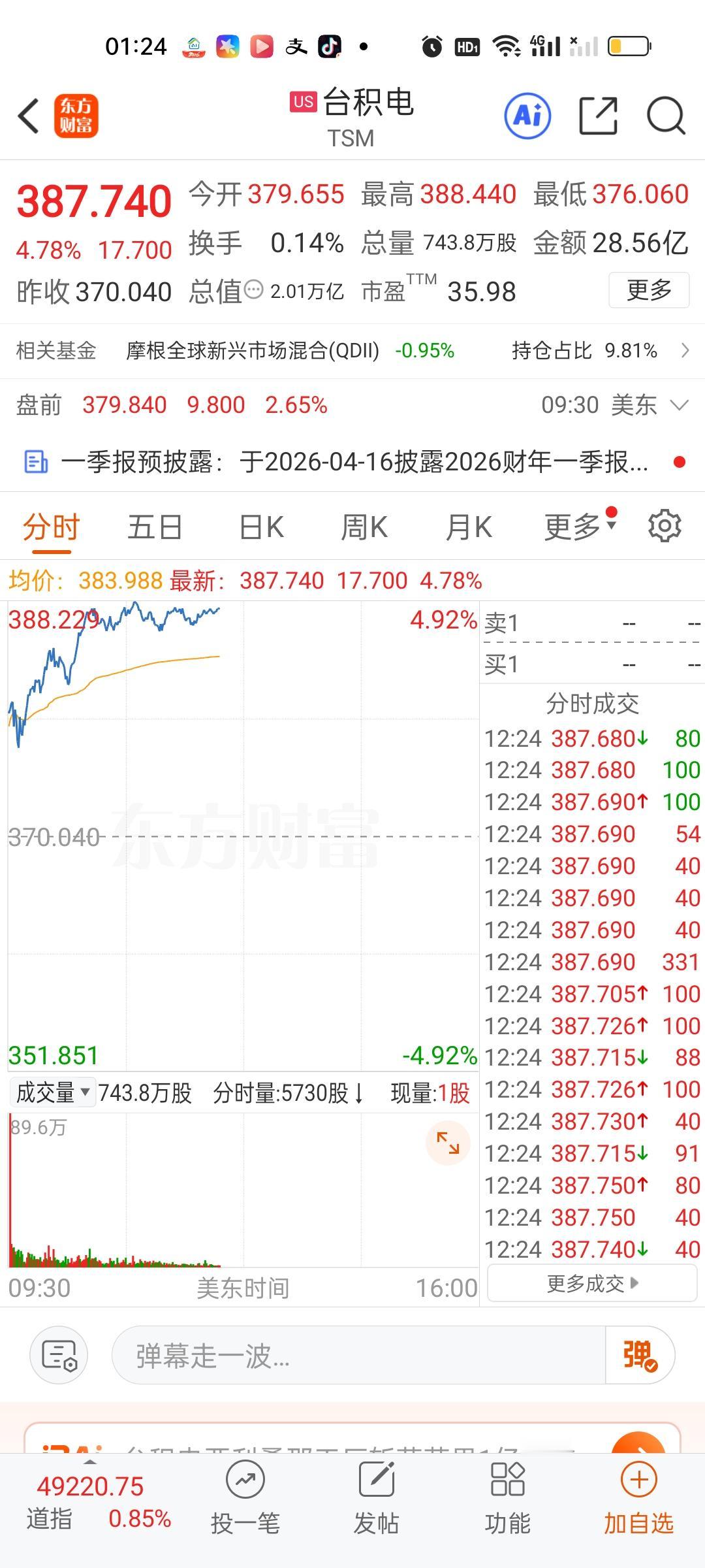 美股晚上涨得最好的还是半导体板块,AMD涨幅超过9.30%,英特尔超过5.10%,台积电涨4.78%,高通涨接近3%。特斯拉,英伟达,闪迪涨幅并没有多大,商业航天也是绿的。