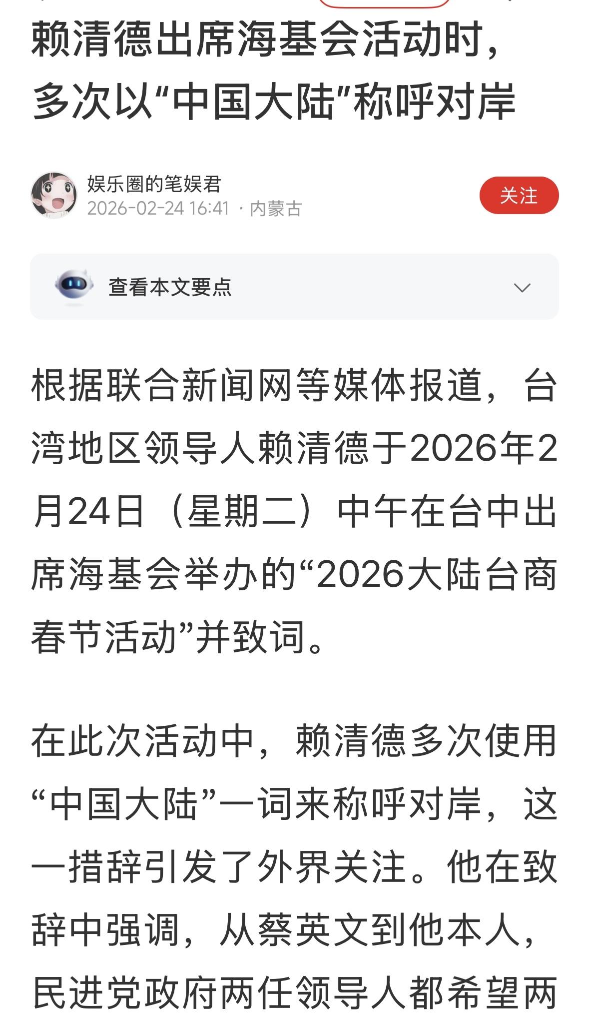 关注台海形势的变化,这是一个我们可以接受的说法,但是,更准确的说法是大陆,就可以了。