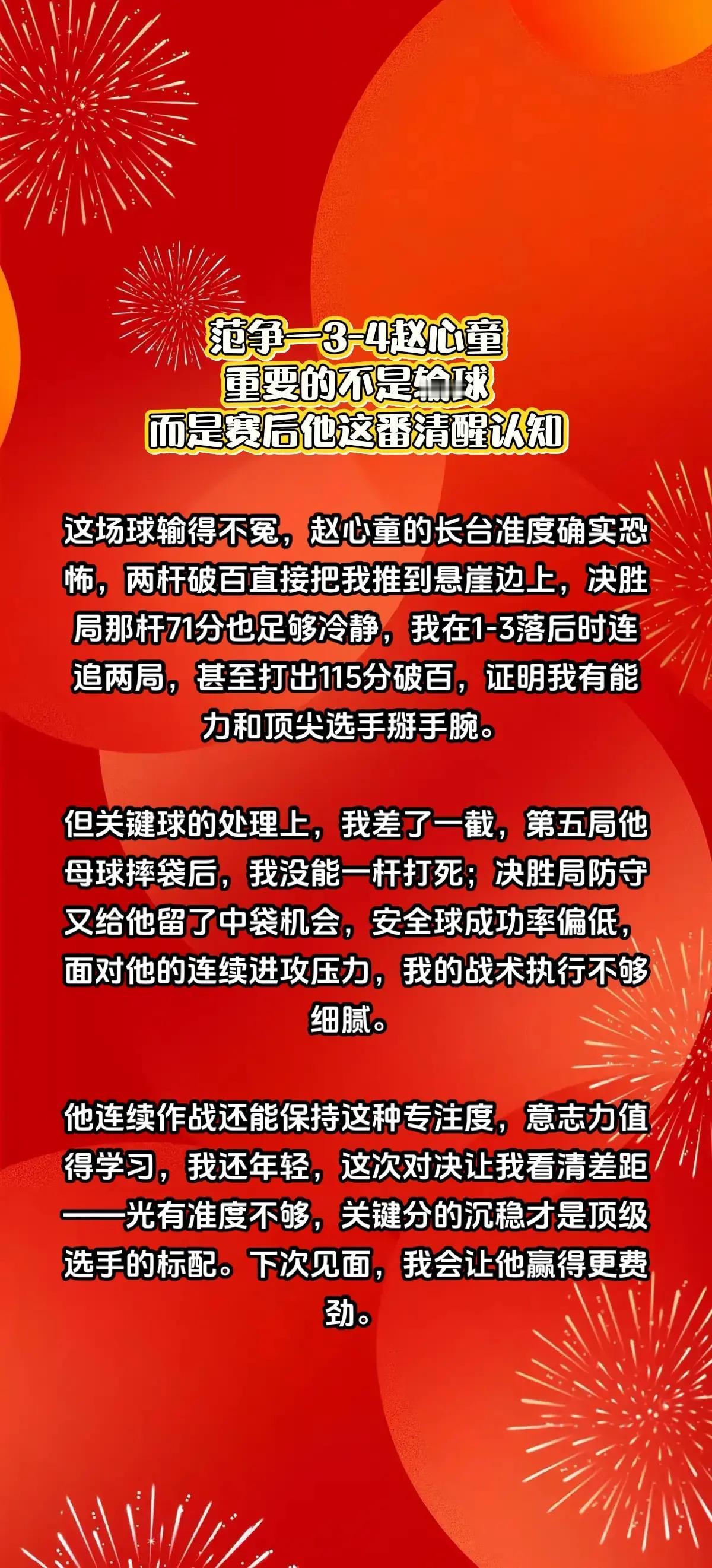 范争一3-4赵心童,赛后说出了比赛关键。