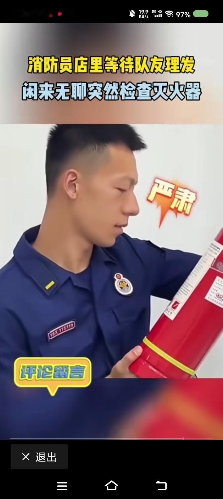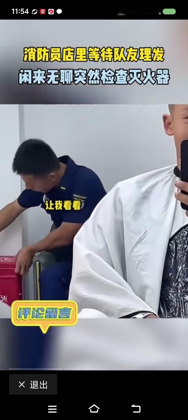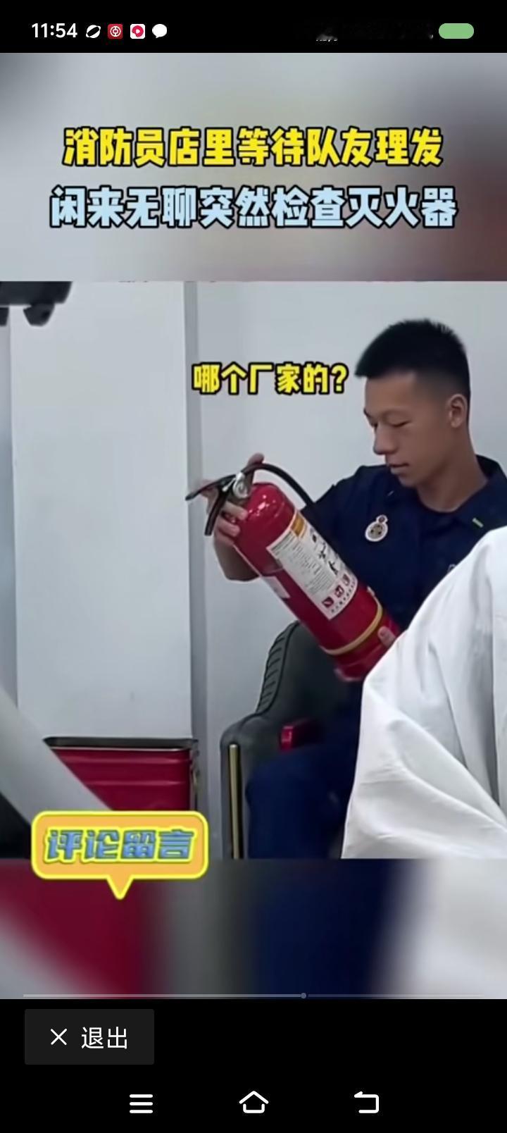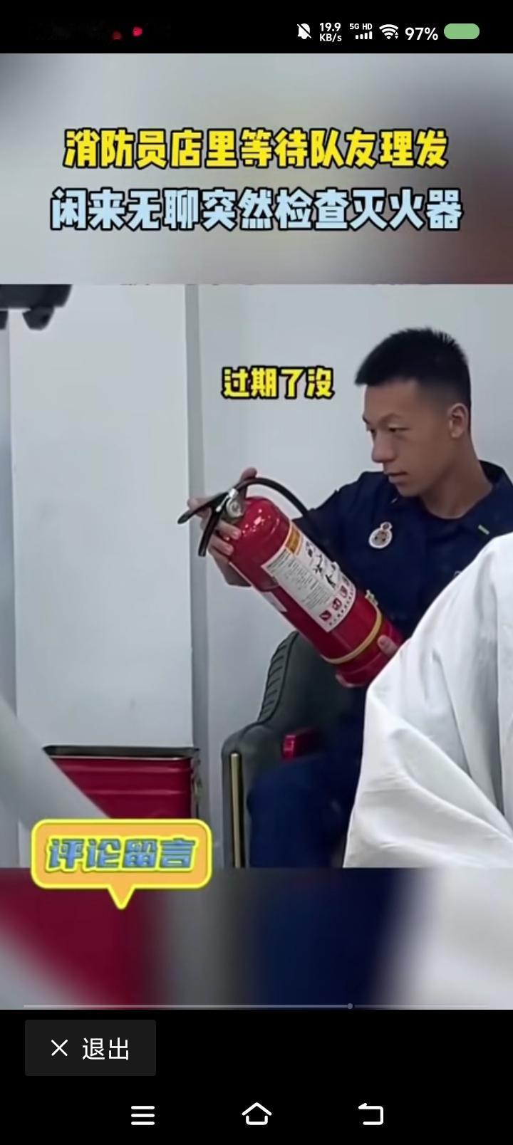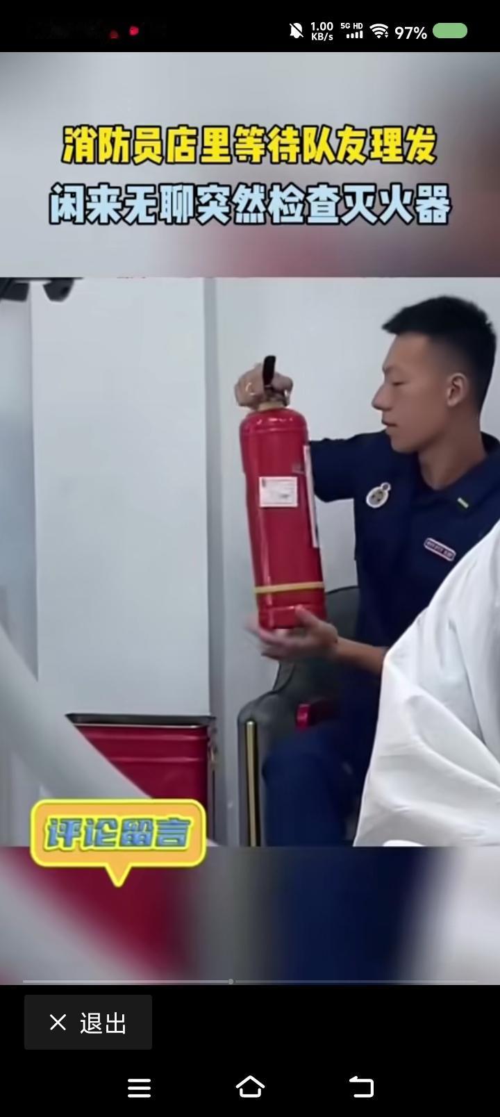 消防小哥,你在工作么?—— 网上视频:一消防员去理发,排队时可能无聊,查看起店里的灭火器。 点评: 评论区有人问:“老板,你慌不慌?” 我想,老板会说:“怕什么?他一个人来的。能执法么?带工作证了么?检查文件有么?” 消防小哥,怎么办? 他会说:“我没有执法,我就是看看。真有危急时刻,你还这么问么?”