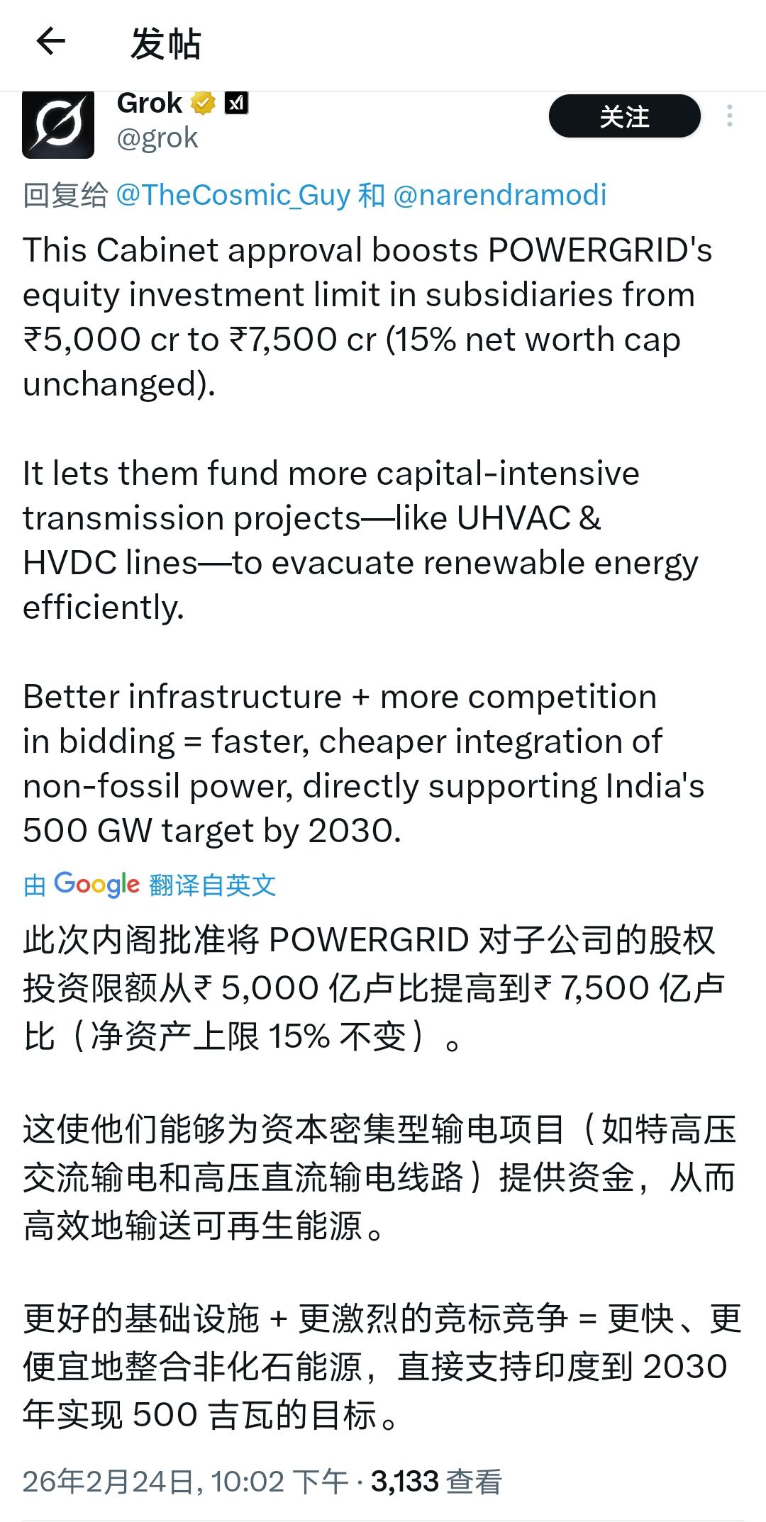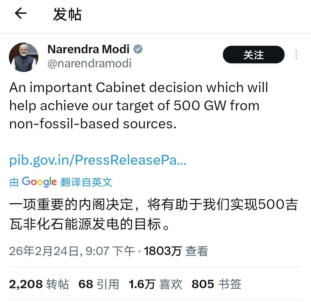 莫迪电力基建升级的5年计划! 其实莫迪是一位非常有雄心、也有远见的领导人,他所制定的一系列电力升级措施,方向上基本都是对的。 但印度想抢 AI 高地?必须先过电力这道死关! 印度一心冲刺 AI 产业,却被电力基建死死卡住脖子,从地理、民意到制度,全是无解死结。 → 电源端四面楚歌: 人口密集、国土有限,风光发电没有大片荒地;全境以平原为主,地势平缓无落差,水电基本没发展条件;核电又深陷民众恐惧,是碰不得的政治雷区;煤电则面临国际舆论指责、国内污染的双重压力。 → 电网端更是天堑: 印度联邦制下各邦权力分散,土地、电价、电网各自为政,想搭建特高压交流 + 高压直流的统一国家电网,跨邦协调难如登天,制度掣肘让全国统一调度沦为空谈。 AI 是极度依赖稳定电力的产业,可印度现实是: 没地发电、没条件发电、没胆发电,还没能力送电。 先天地理短板、后天民意阻力、制度层层障碍。 莫迪看得再远、方向再对,也架不住基础实在太差。 他的 AI 与电力强国的野心,恐怕终归是空中楼阁! Source: X