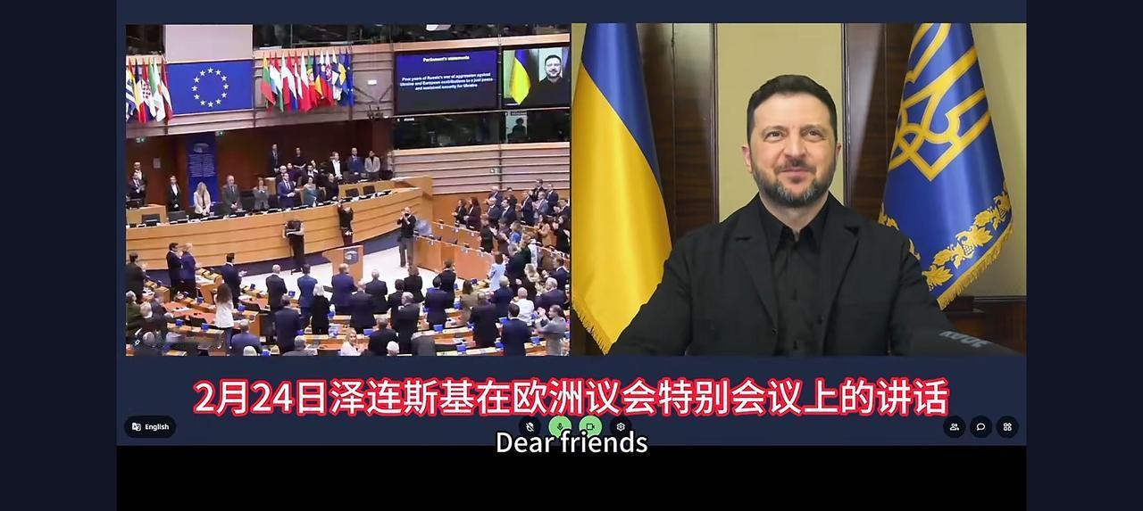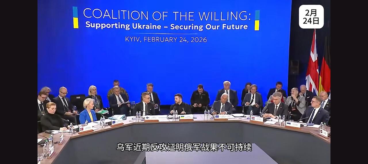 欧洲盟誓确保乌克兰胜利 2月24日,欧洲举办多场活动,纪念乌克兰英勇抗战四周年。主题只有一个,赞扬乌克兰为自己的自由、为欧洲的自由而战,盟誓欧洲将为乌克兰提供一切必要支持,确保乌克兰胜利。 一,志愿联盟集会。集会在线下线上同时举行,亲赴基辅出席线下集会的有:欧理会主席科斯塔,欧盟委主席冯德莱恩,北欧五国及波罗的海三国政府首脑,其他成员国的外长等高官;英国首相斯塔默,法国总统马克龙,在线上主持了会议。各成员国除去不吝言辞赞美乌克兰军民不屈不挠的意志与艰苦奋斗的精神,就是争先恐后掏银子给乌克兰了。 二,欧洲议会举行特别会议,邀请泽连斯基进行线上演讲。议员全体起立,热烈鼓掌,表达对总统的敬意,表达欧洲的权力机构一定托得住对乌克兰的全方位援助。 三,北约秘书长吕特在布鲁塞尔北约总部举行纪念俄罗斯全面入侵乌克兰四周年仪式。他说:我们将铭记乌克兰所承受的一切,我们被乌克兰四年来从未中断的抵抗精神所鼓舞,被乌克兰四年来坚定不移的勇气所激励。 欧洲坚定地站在乌克兰一边,承诺确保乌克兰的胜利。欧洲有确保乌克兰胜利的实力。