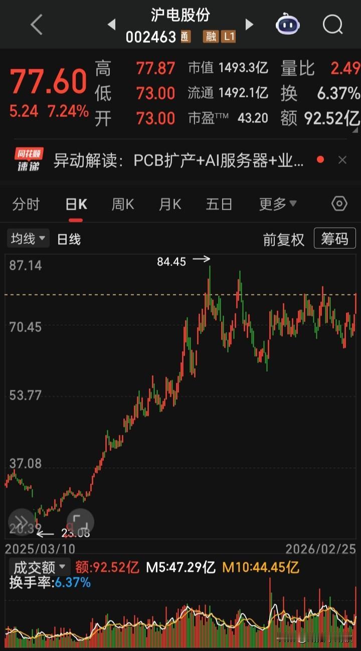 【每日观察2026.02.25】马年第二个交易日,在总成交额24809亿比上个交易日增量2627亿、上涨3748家下跌1609家、涨停101家跌停4家的情况下,谁在成交额前十 胜宏科技174.92亿,涨9.31% 北方稀土165.48亿,涨停 新易盛 128.80亿,涨2.67% 中际旭创119.99亿,涨2.18% 紫金矿业115.05亿,涨0.79% 天孚通信113.01亿,跌2.71% 华工科技108.79亿,涨4.46% 工业富联96.47亿,涨3.63% 沪电股份92.52亿,涨7.24% 利欧股份91.13亿,涨2.41%