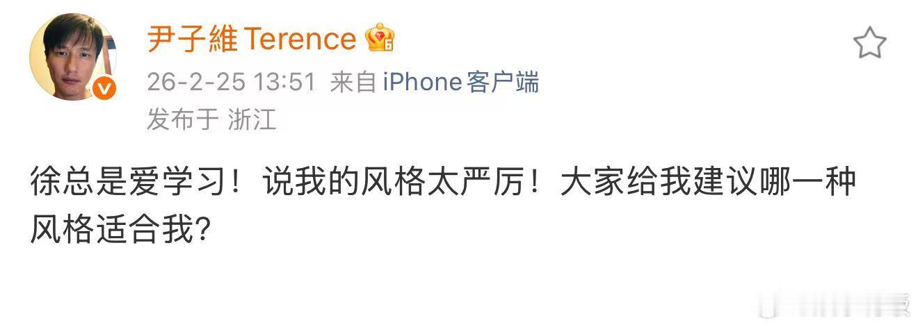尹子维和徐冬冬争执原因 尹子维徐冬冬的吵架原因找到了,徐冬冬说尹子维的“风格太严厉”,不过两个人在一起有摩擦也是正常的~