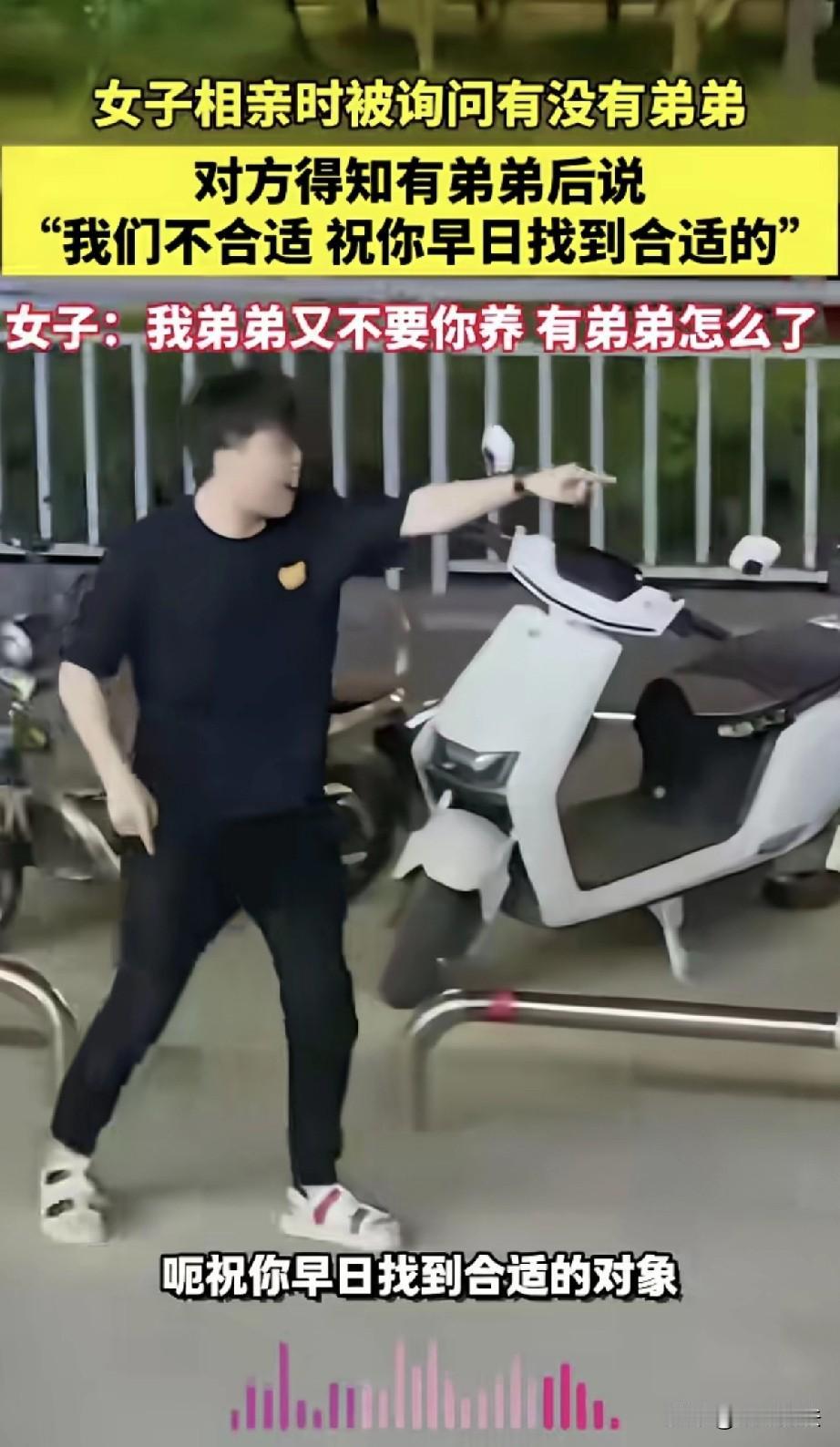 “三观碎了!”一女子面容姣好,经人介绍,她和相亲对象见面,谁知寒暄过后,对方直接就问,你是独生子女吗?家里有没有弟弟?女子回答有弟弟,对方立刻就说,那好,那我觉得咱俩不合适,祝你早日找到合适的对象!女子急了:有弟弟怎么了,我弟弟又不要你养? 一女子到了适婚的年纪,父母亲戚操心她的终身大事,就连同事们都积极踊跃,帮她介绍各样的男子。 女子本人,倒也不很着急,她面容姣好,是个十分美丽的女子。 她心思单纯,可爱善良,长长的头发,散发着青春的活力。 女子家里,还有一个弟弟,弟弟年幼,还在读书的年纪。 父母对他们姐弟,一视同仁,无论男孩女孩,都是他们手心里的宝贝。 女子工作以后,父母全力支持弟弟的学习,这在普通的家庭,原本就是这样的模式。 女子的父母通情达理,女子和弟弟也是充满着姐弟情谊。 他们家庭和睦,父慈子孝,女子幸福快乐,并没有感到有什么不对。 随着她年纪长大,她的婚嫁成了父母最大的心病,女子本人并不着急,可是父母的期盼是她最大的动力。 她也想找到一位男子,有情有义,有担当有责任,她也想结婚生子,将来能有一个自己的家庭。 她对婚姻抱着宁缺毋滥,因此一拖再拖,始终没能找到心仪的男子。 最近,又有人给她牵线搭桥,女子没有推辞,多见一次就多一次机会。 也许那位白马王子,就在不远处等待着她,也许就需要一个契机,俩人就能组成家庭。 女子事先打扮了一番,镜子里的女子更加的美丽,她松散的头发,白皙的脸庞,五官精致,十分的美丽。 在她看来,收拾整齐,最起码是对对方的一种尊重,她来到了相亲的地点,看到了那位相亲的男士。 俩人坐下,寒暄了几句,彼此简单介绍了自己。 可万万没有想到,男子没说几句,话风一转,直击就问: 你是独生女吗?家里有没有弟弟? 女子一愣,点了点头,女子表示,我家里是有一个弟弟。 谁知对方听罢,脸上的表情立刻就变了,他起身就要走,女子不知道他什么意思。 难道是自己做错了什么?还是对方发生了什么紧急的情况? 这些念头瞬间在女子脑海中一个个划过,她不知道,对方突然要走,这是什么意思? 谁知对方猜出来她的心思,连忙就向她解释,对方表示: 那好,那我们不合适,祝你早日找到适合你的对象! 女子瞬间就明白了过来,感情对方是嫌弃自己有个弟弟。 女子就奇了怪了,我有弟弟怎么了?我弟弟又不要你养,我有弟弟和你有什么关系? 话虽如此,可是眼看着男子转身离去,他们之间没发生矛盾,就是这样直白的问对方的家庭。 女子顿时感觉,能被剩下来相亲的人多少都有些不太正常! 女子一边说着,一边也在嘲笑着自己: 我自己就有点不太正常,我也能感觉到。 女子感到悲哀,不知道自己有个弟弟怎么就成了自己的缺点和问题了? 有人回应,这没有不正常,有弟弟的女方家庭条件好,都是留给弟弟的,女方爸妈帮不到家庭,男子离开,说明是人间清醒。 如果女方家庭不好,那更麻烦,姐姐还要扶持弟弟,反正好处没有,坏处都有。 也有人说,独生子女最好,虽然毛病多,但是父母就她一个,会帮忙,你有个弟弟,父母肯定帮弟弟,女儿就是泼出去的水了,相亲的小伙想的没错。 更有人说,有弟弟的情况下,伏地魔的概率是50%,我要是我也不愿意。 第一丈母娘基本不可能帮带孩子了,有孙子肯定是主带孙子。 第二,老丈人一家基本不会给你任何支持与帮助,尤其是经济支持。 有人说了个更扎心的事: 大多数家庭,女孩有弟弟,将来父母的财产都是弟弟的,但是养老的时候女儿和弟弟要均摊,甚至有的女孩还要帮扶弟弟。 其实这事确实现实,怪不得小伙直接跑路。 很多人一听“伏地魔”就退避三舍,其实并不是嫌女孩不好,而是怕背后藏着一堆隐形的“连带责任”。 万一姑娘家弟弟买房、结婚要姐姐接济,最后还不是得连累小两口过日子。 但是,现实归现实,也不能一竿子打翻一船人,并不是所有有弟弟的女子都是伏地魔。 男子这样的做法有些直白,最起码你要先了解一下女子的心思。 男子的做法确实挺伤人的,而女子难受的点,并不是相亲失败,而是对方看重的并非女方本人。 而自己珍视的家庭亲情被当成了对方眼里的缺点,因此女子才难过了。 对此,你怎么看?