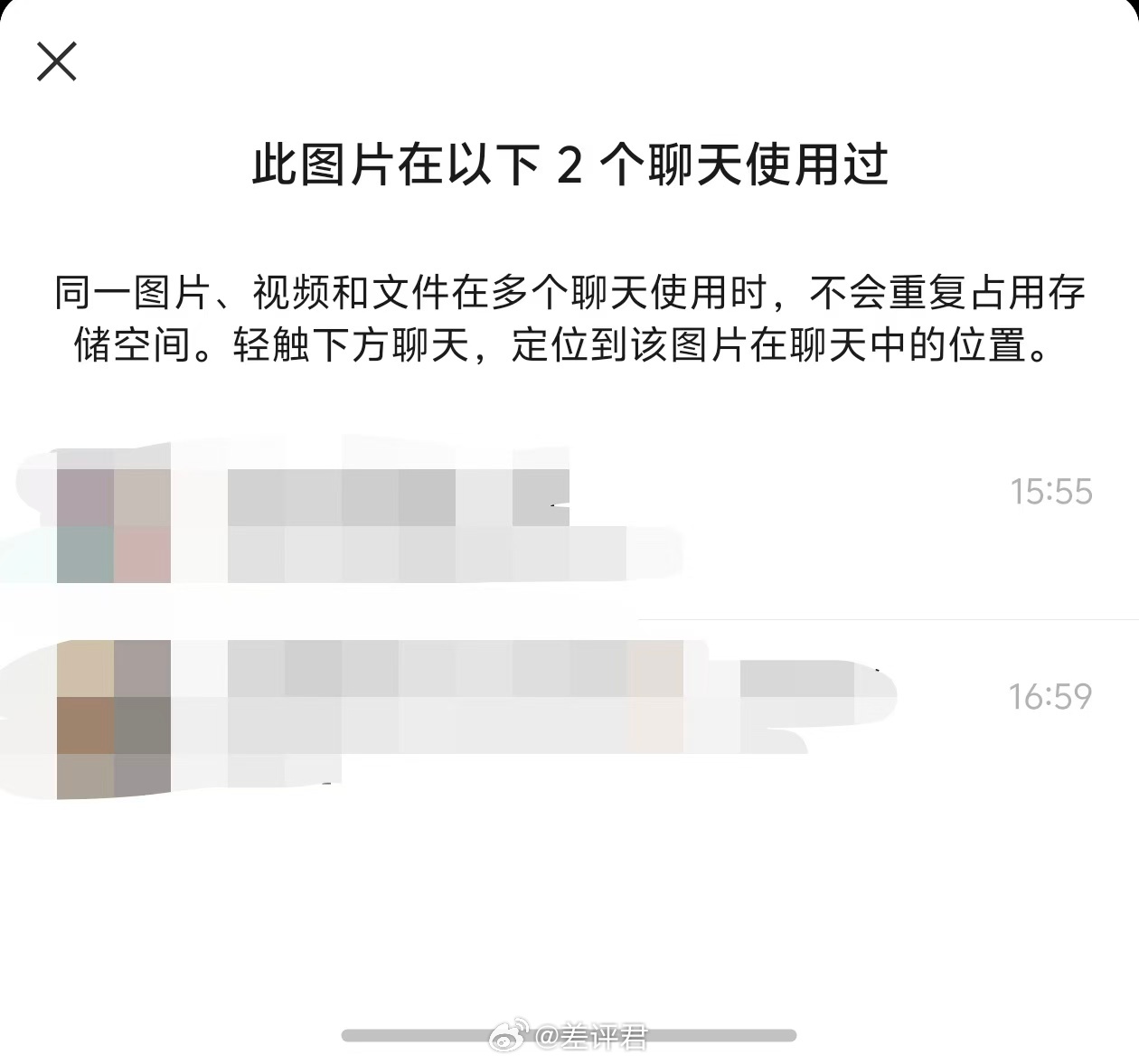 #差评说数码# 微信最近上了个新功能,可以查找包含某张特定图片的聊天,我试了下,单个设备转发某张图片确实可以溯源,某种程度也算是证明微信里同一图片不会重复保存了 不过如果是 PC 端转发,手机上去看,就查不到是从哪个群转发出来的,难道说这种情况还是重复保存了?