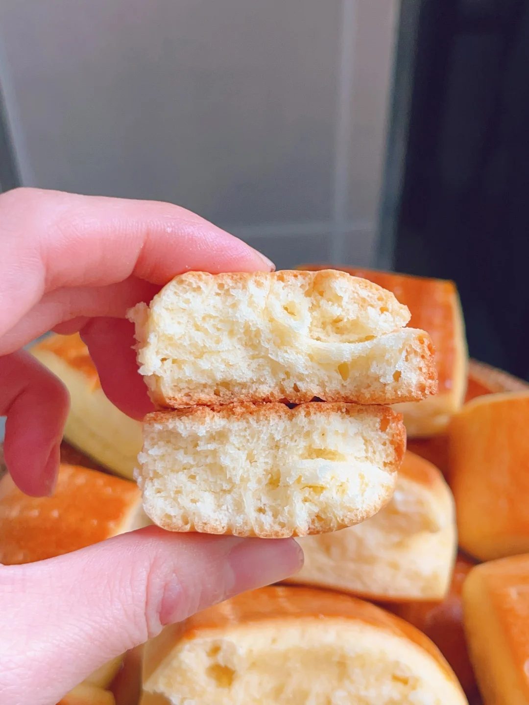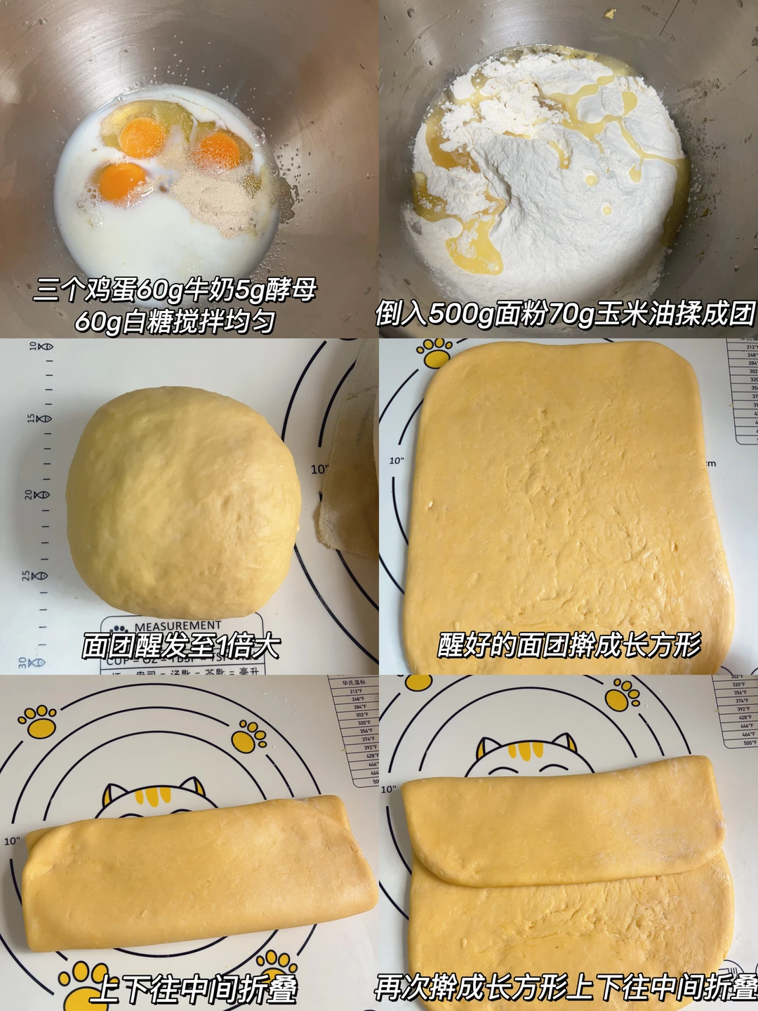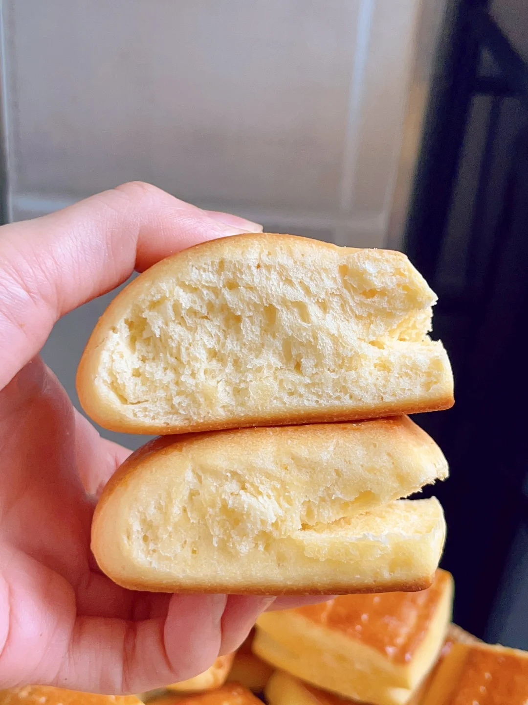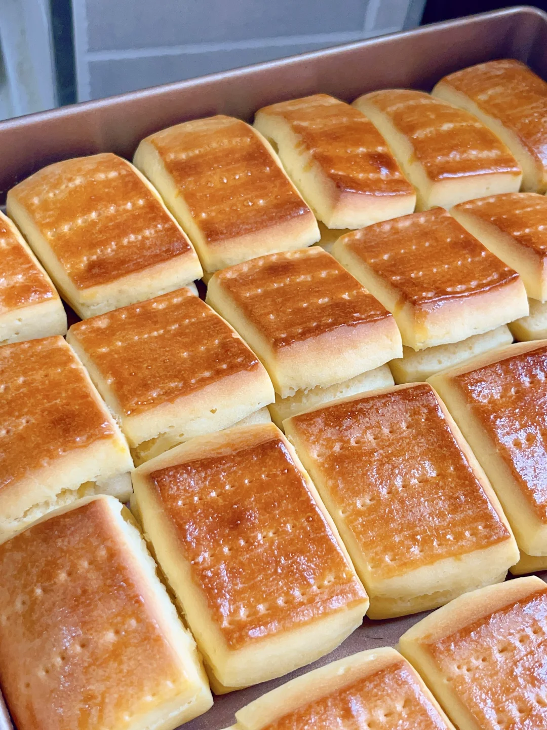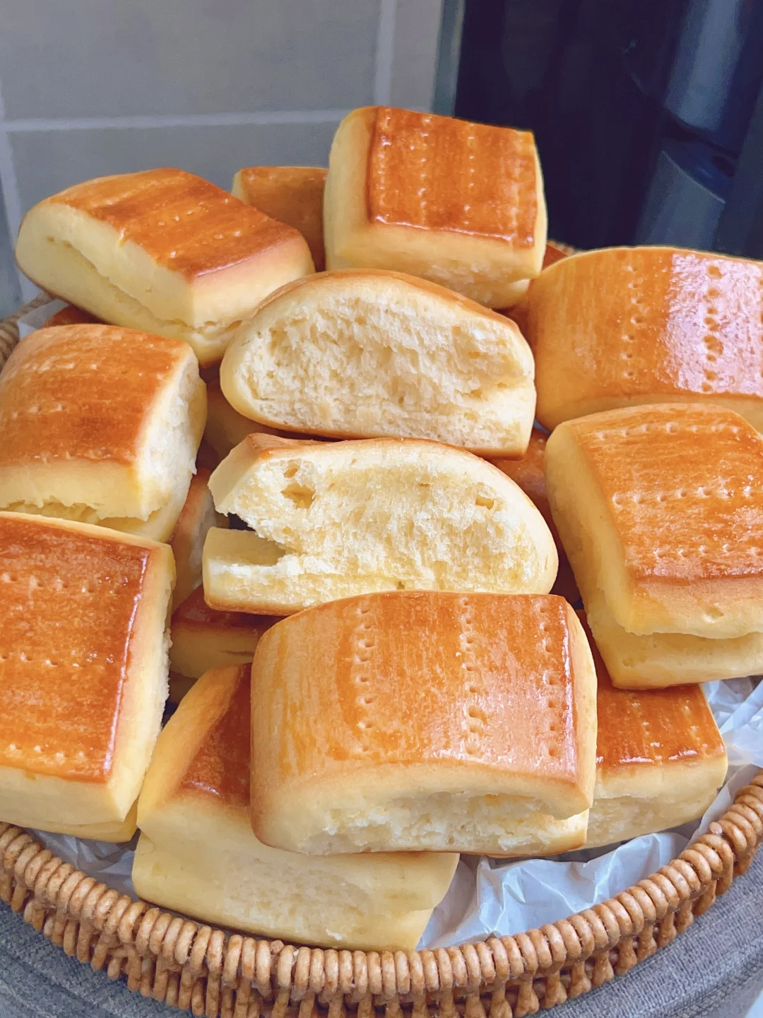 这个棋子饼真的好香好香,食材简单做法简单松松软软真的巨好吃! [清单R]食材 3个鸡蛋、5g耐高糖酵母、60g牛奶、500g面粉、70g玉米油 [清单R]步骤 1⃣️盆中打入3个鸡蛋5g酵母60g牛奶先搅拌均匀 2⃣️然后加入500g面粉70g玉米油揉成面团,面团醒发至1倍大 3⃣️醒好的面团擀成长方形,上下往里折叠然后再次擀成长方形,重复做4-5次,最后擀成和烤盘差不多大小的长方形 4⃣️用叉子在面皮上叉一些洞,切成块状放在烤盘中醒发至1倍大 5⃣️醒发好后刷一层蛋黄液,烤箱200度烤20分钟