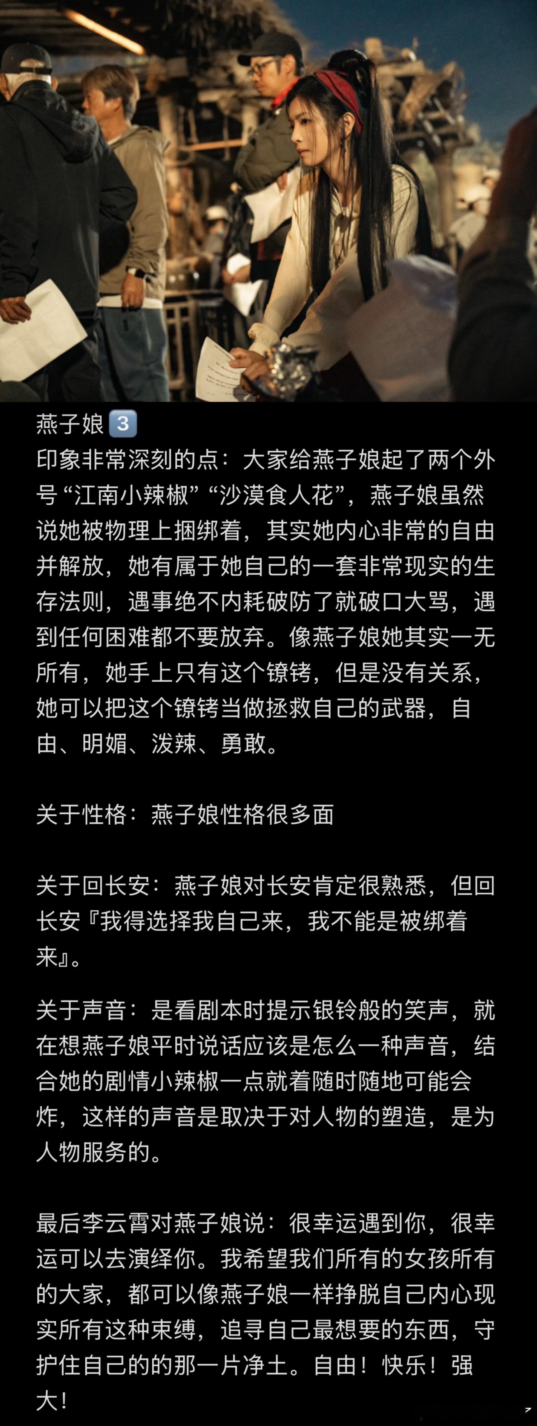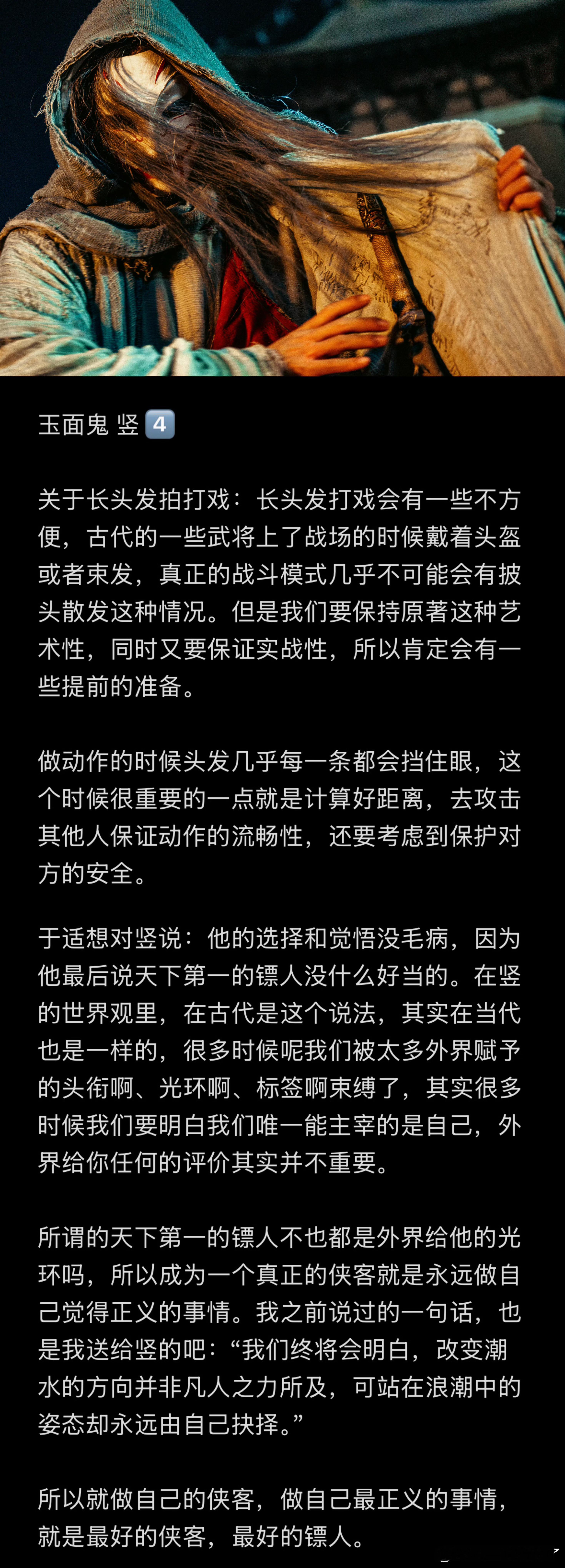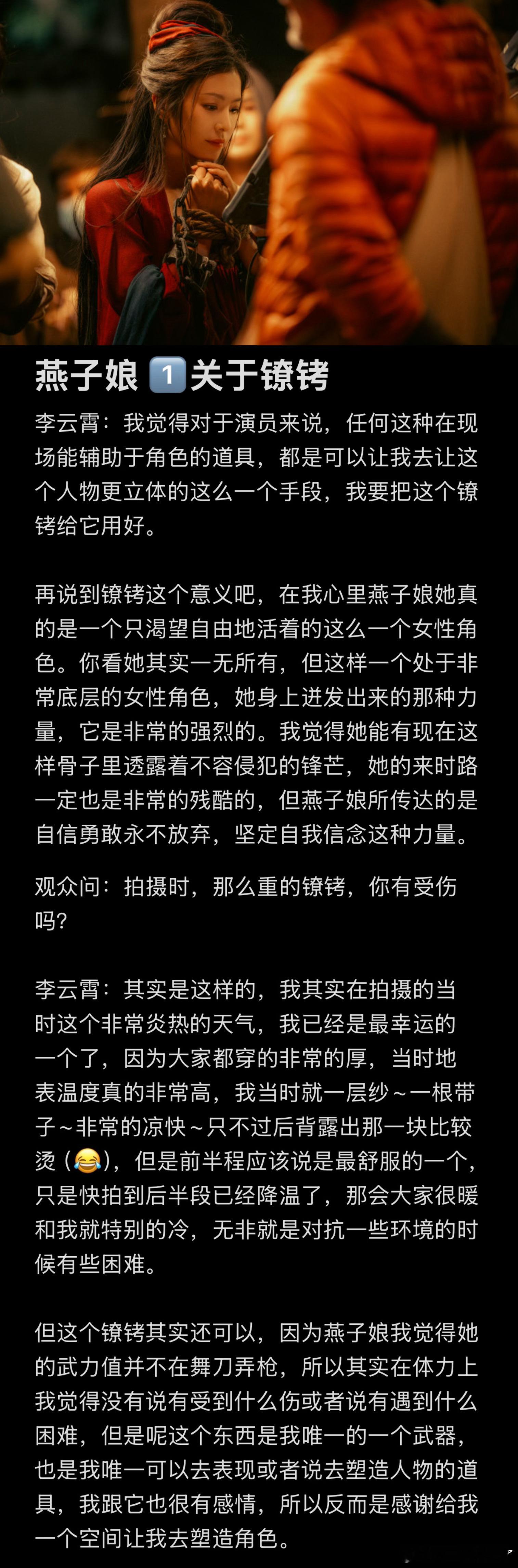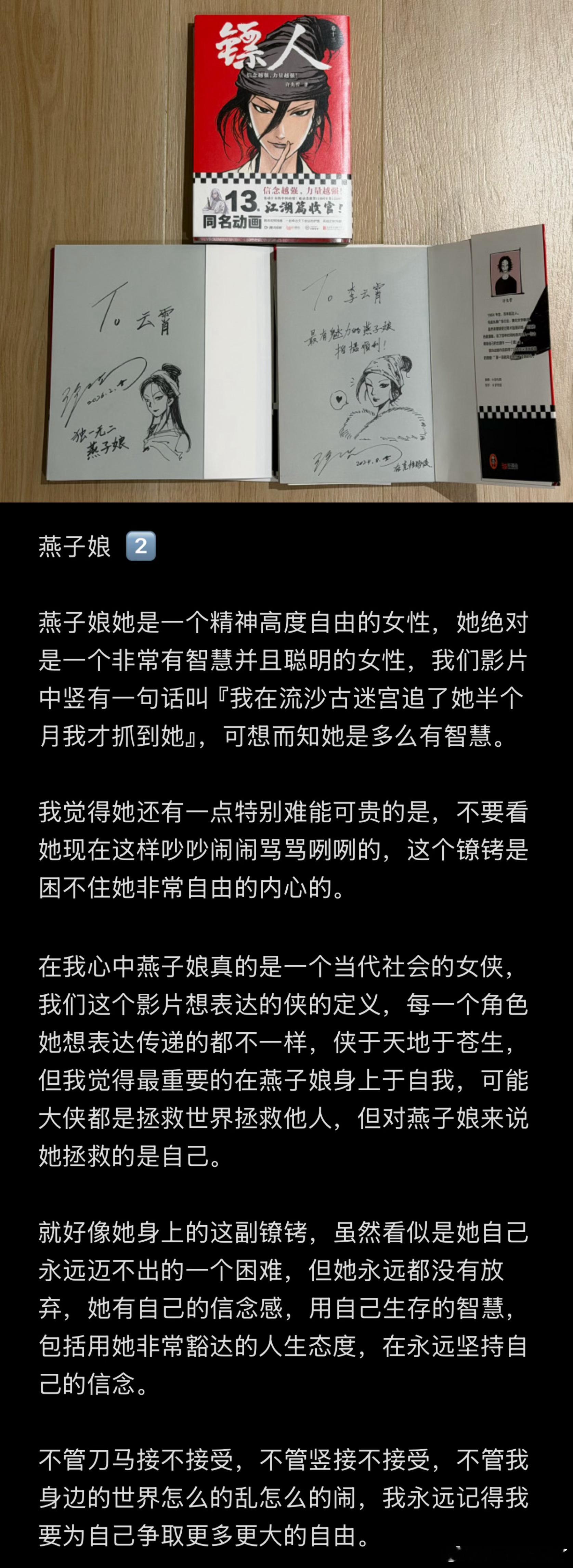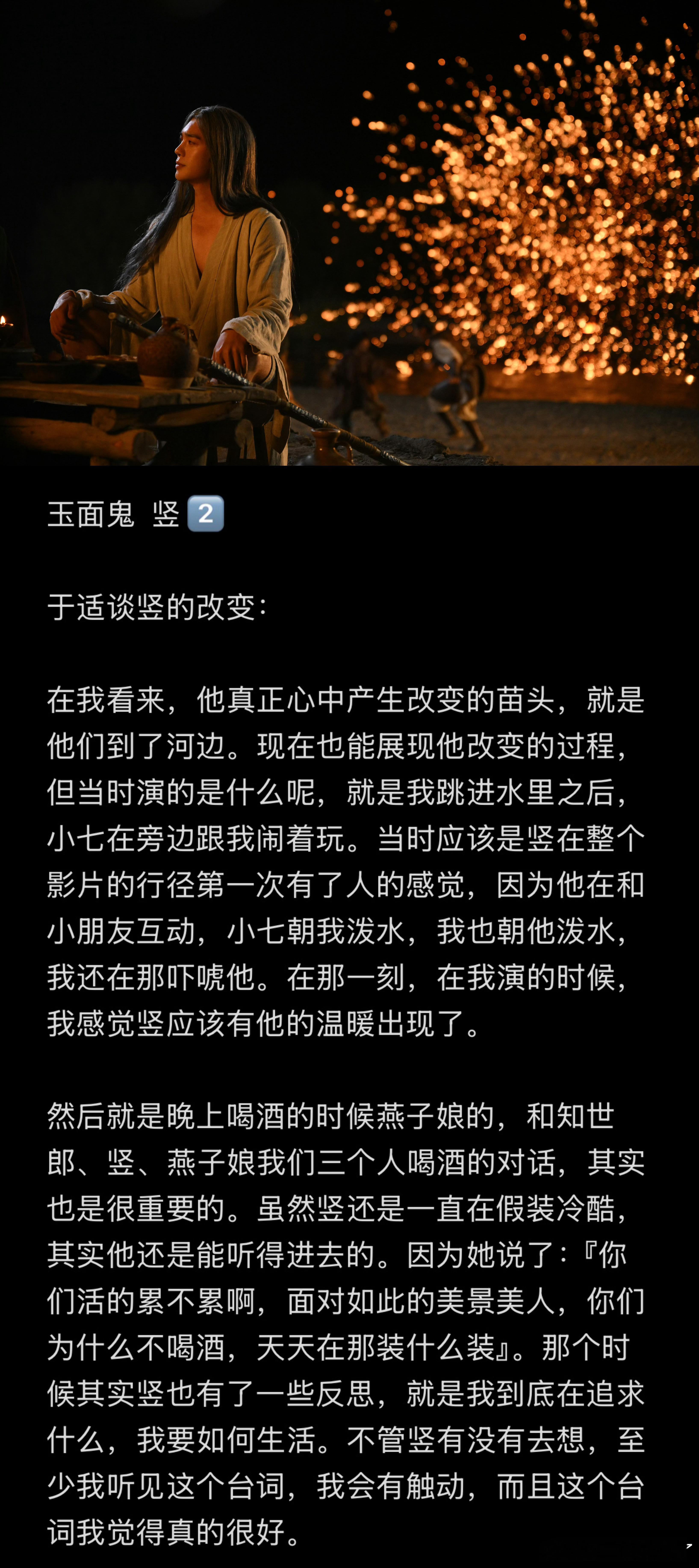 又到了我最爱的看演员主创对角色的解读环节,存一下《镖人》竖、燕子娘还有河边谈心相关的。非常值得看,好演员就是戏里戏外都能给角色双向赋魅,对于辅助理解角色也很有用(其实电影里演员已经把角色展现的很生动了)!
