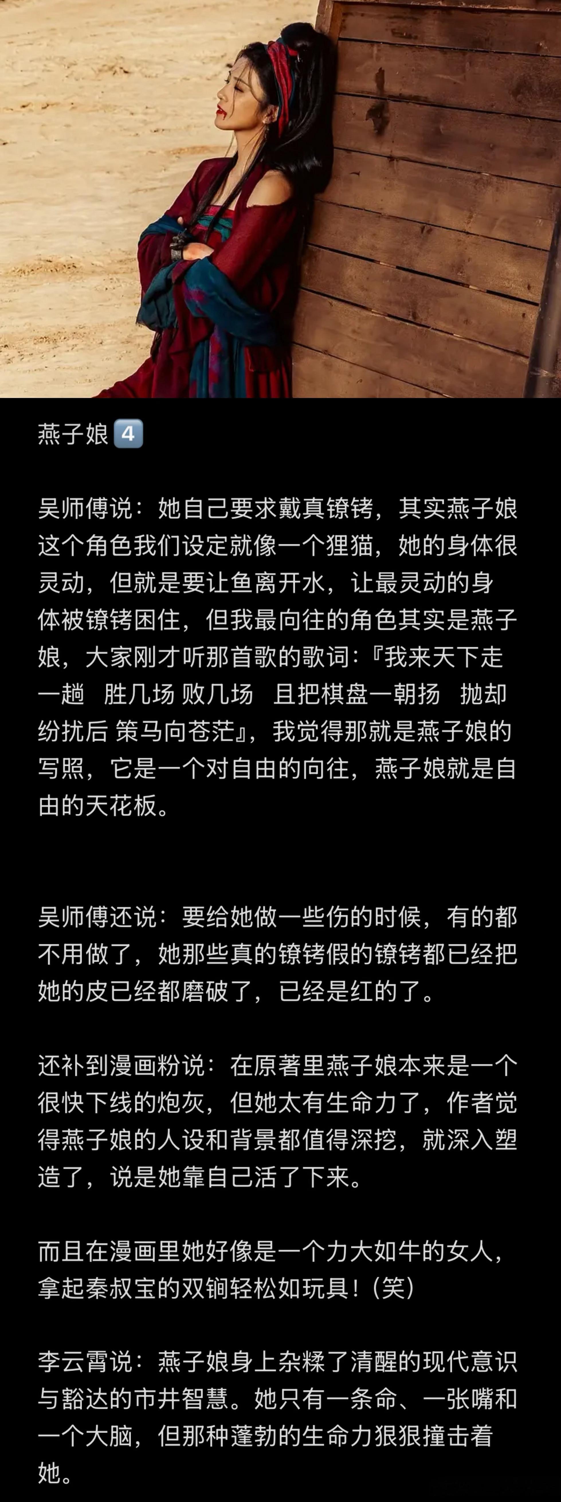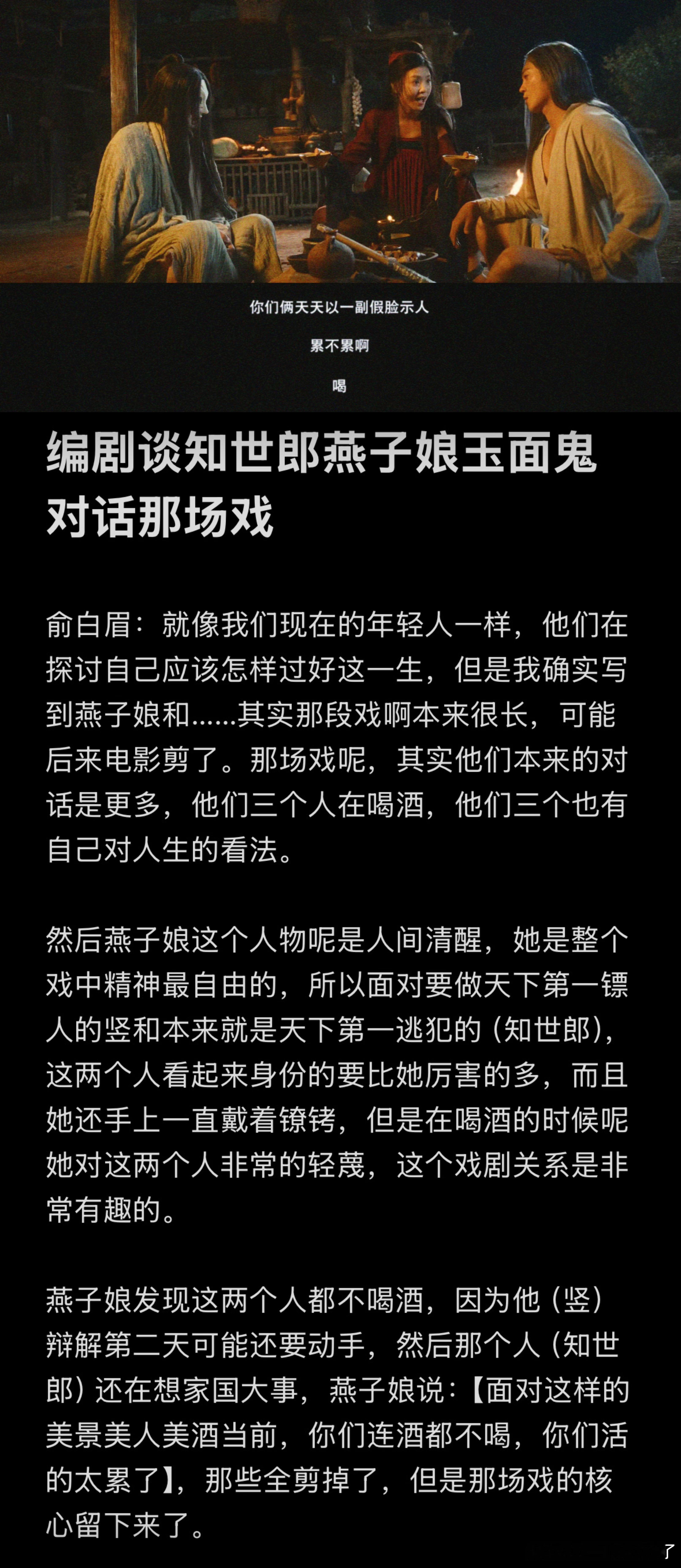 又到了我最爱的看演员主创对角色的解读环节,存一下《镖人》竖、燕子娘还有河边谈心相