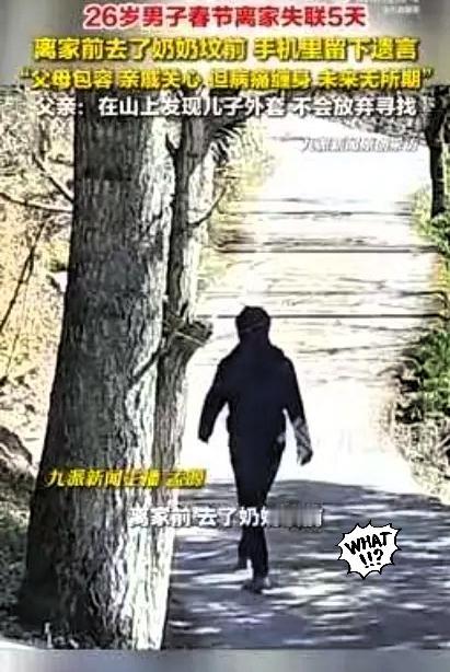 心酸!四川26岁小伙正月初三失联,看完细节太心疼了! 春节本该团圆,他却在拜年期间悄悄走向深山。监控拍到他先去了奶奶坟前,那是最疼他的人,也许是想跟奶奶说心里话。 他把手机留在窗台,里面存着没发出的告别:说自己身体不好、工作不顺,不想拖累家人。搜救多日,只找到他的外套,父母急得日夜不眠,满头白发。 很多年轻人习惯把苦藏在心里,笑着回家,转身崩溃。其实生活再难,都比不过家人的牵挂,健康活着比什么都重要。 真心希望他能平安回家,别让家人一直等。你身边有没有默默扛着压力的年轻人?