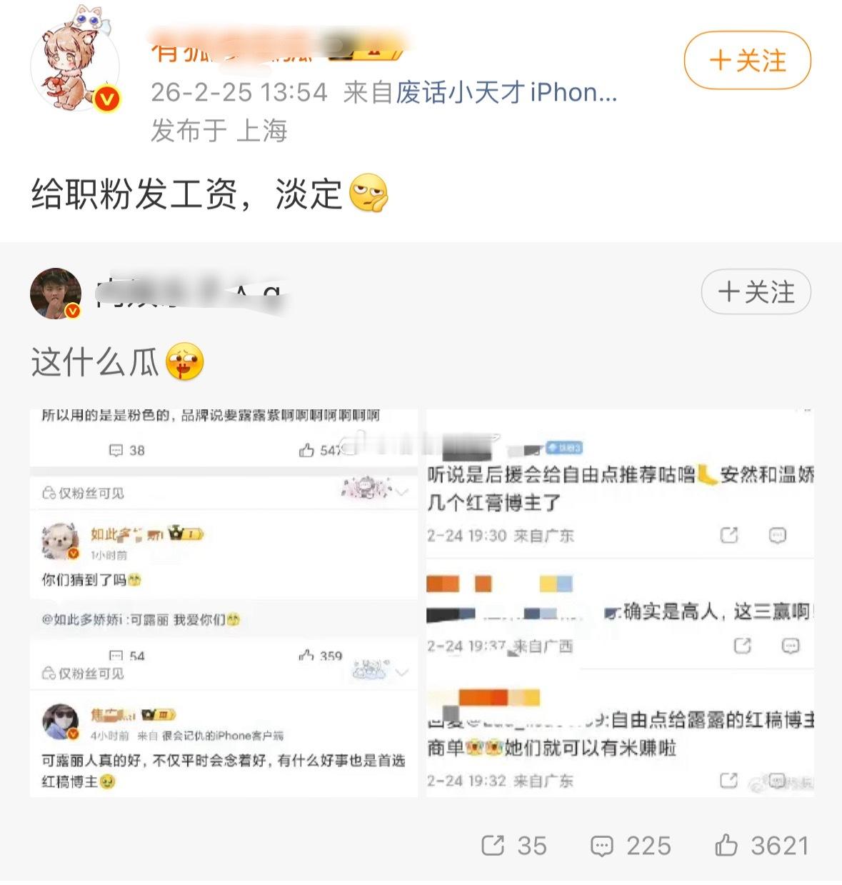 一些无良yxh少造谣了,感谢粉丝而已就扯是脂粉了,那是不是所有接哪个明星推广的都是自家养的啊,毛事被禁,🐟丝8芬还去哭fen怎么说呢真养yxh kol的那些都不用给推广💰,直接是每个月打工z的,揣着明白装糊涂呢!
