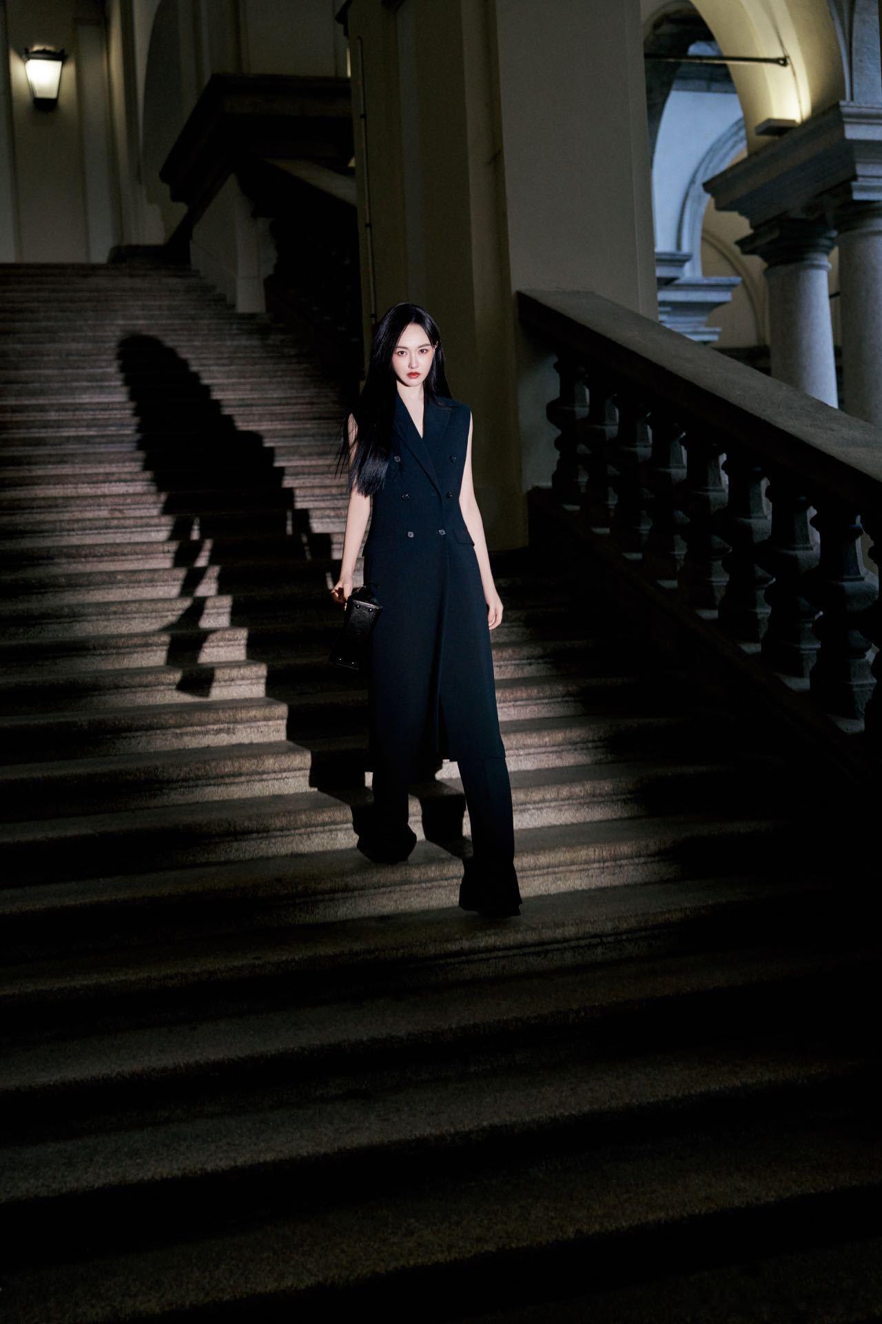 唐嫣无袖西装唐嫣好笔直的一条人 无袖西装最考验身材,唐嫣穿出了教科书级别。直角肩、天鹅颈、笔挺身姿,加上黑长直的清冷感,米兰时装周最靓的风景就是她了。