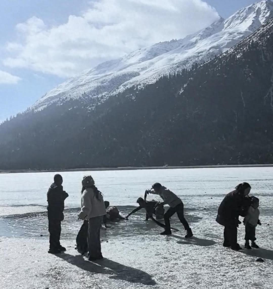 【女童不慎掉进高原冰湖,10多名游客和路过武警毫不犹豫冲上前成功救人】2月24日(大年初八)中午,在昌都市八宿县然乌镇附近的然乌湖上,一名小女孩在冰面上玩时,不慎掉进湖水。10余名游客和路过的武警官兵不顾寒冷,纷纷跳进湖水将小孩抢救上岸,因救援及时,孩子幸无大碍。有游客拍下救援过程在网上发布后,引来许多网友点赞。